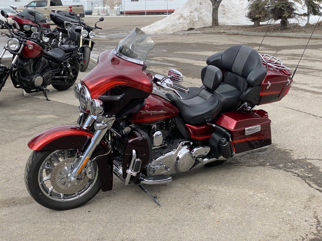 Technology & Audio: A 160-watt Harman/Kardon audio system with CD/AM/FM/MP3 capabilities, plus cruise control and standard ABS.Handling: Built on a new touring frame with a 180mm rear tire, Brembo brakes, and a 70-pound increased load capacity.
