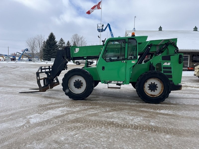 2019 JLG 6042 zoom boom is powered by Cummins diesel engine. Unit is equipped with manual quick connect. Enclosed heated cab. Maximum lift capacity is 6000lbs and 42 feet of height reach. Has a forward reach of 29’. Machine operating weight is about 27000lbs. 4 wheel drive with 2 wheel, 4 wheel and crab steering. Hour meter reads 2149 . Located in Maxwell Ontario.