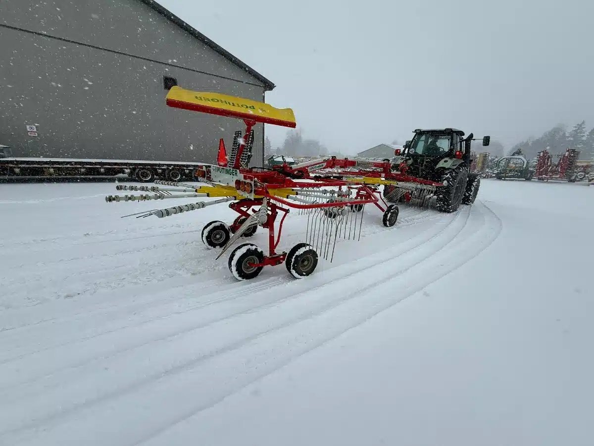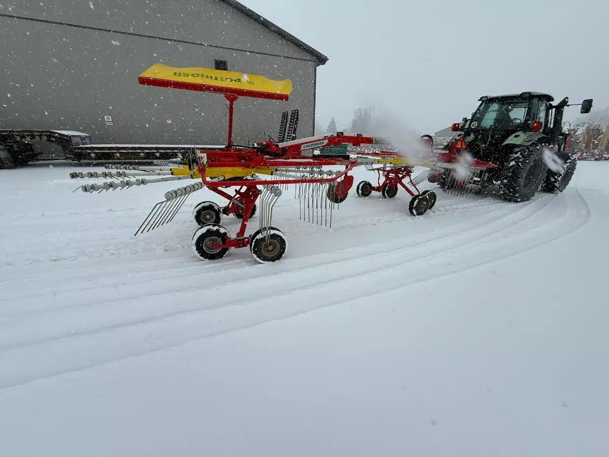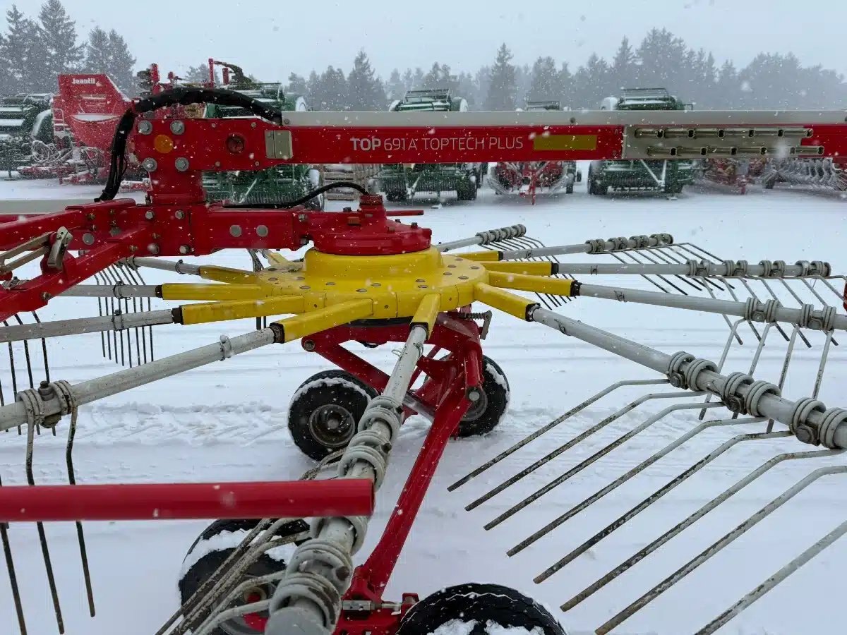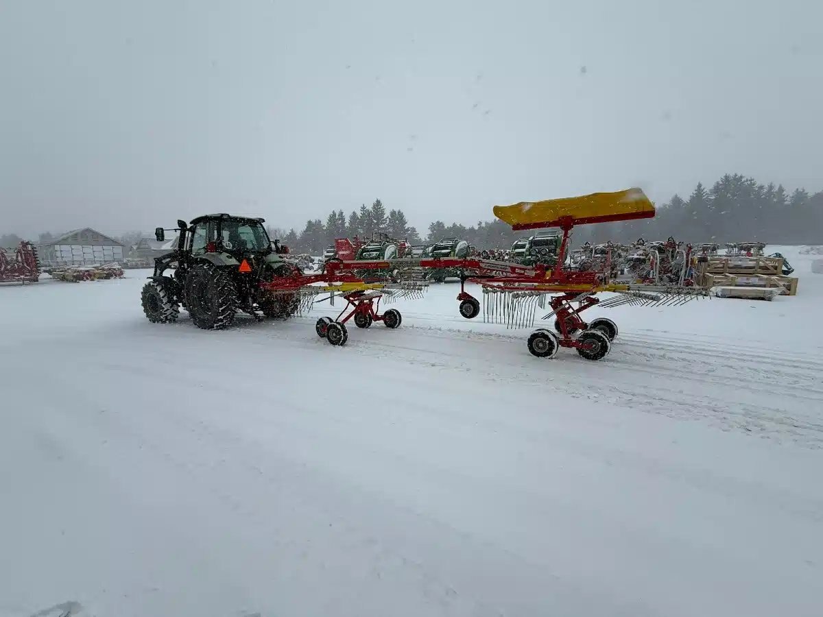 twin rotor rake, tandem axle, drawbar hitch,req 2 remotes, front and rear curtain, 540 pto