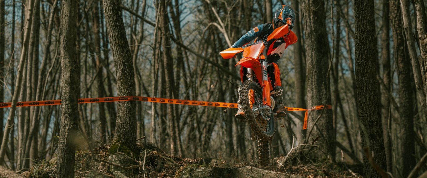 | Two years of hard-charging R&D have gone into the making of the 2025 KTM 125 XC. That's right, we meant Racing and Development. A reworked, lighter frame, updated engine mounts, and a new durable chain glide - to name a few - make the 2025 KTM 125 XC the leader in the 2-Stroke GNCC screamer class. |