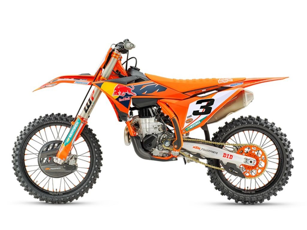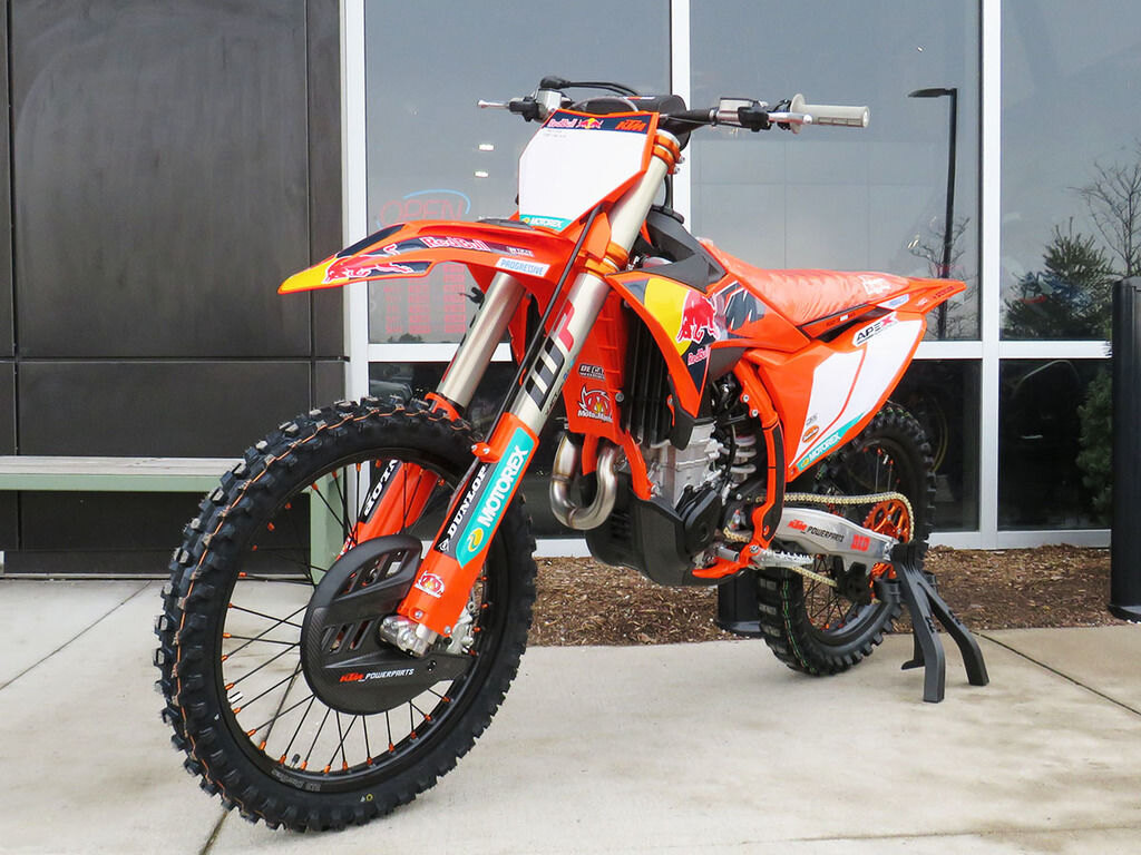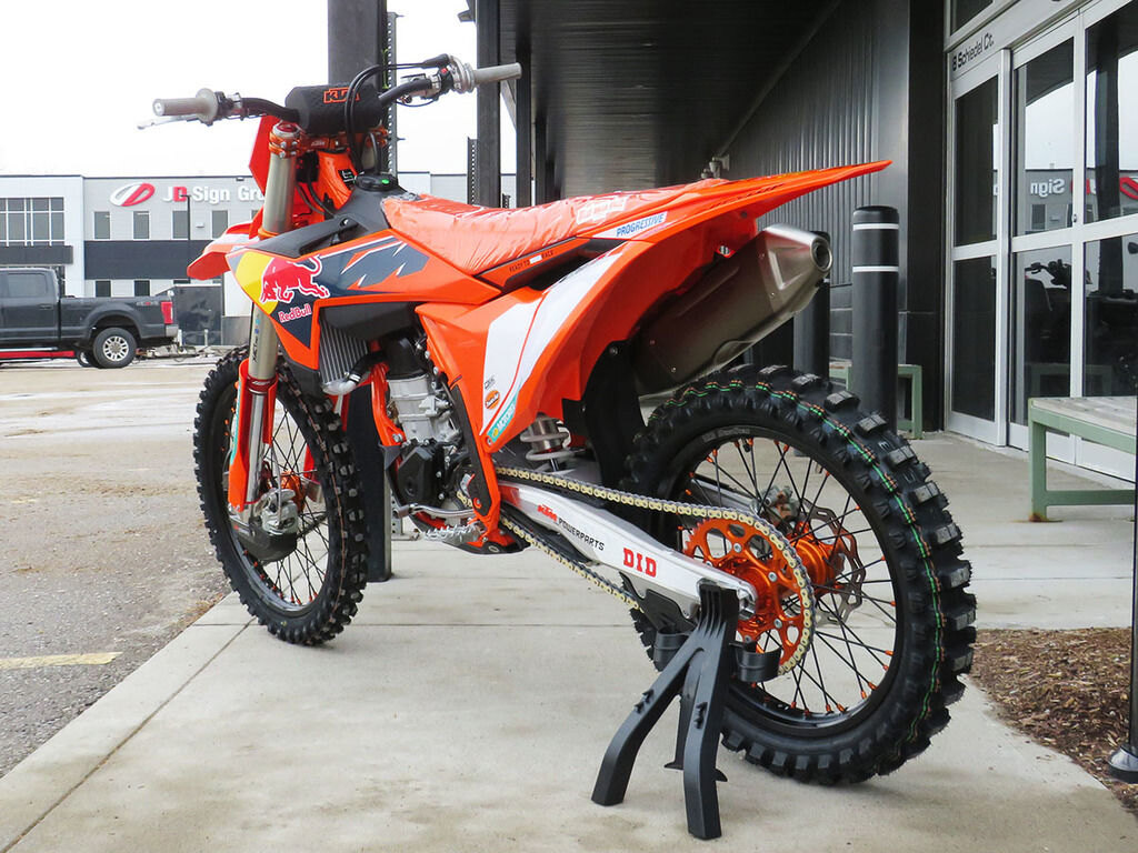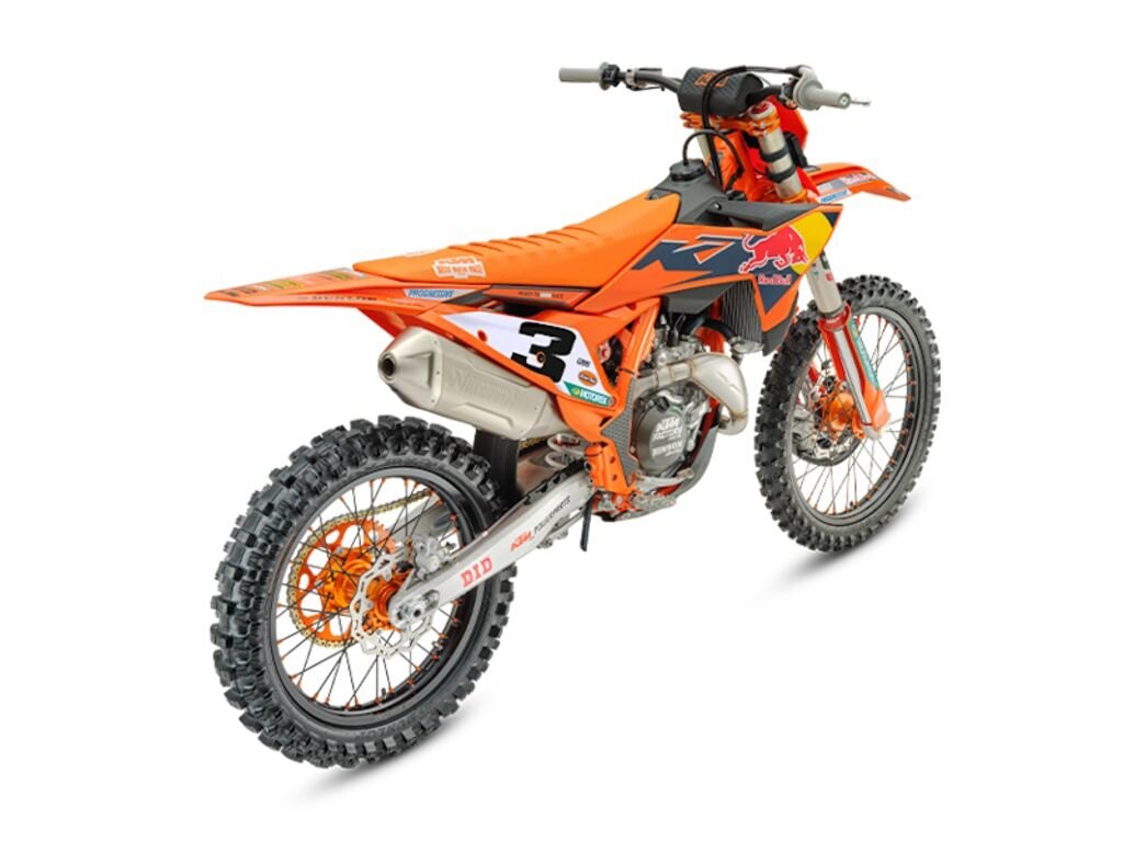 The strongest startWhen the gate drops you need to be the first to off the line in a bid to rule (and make) the roost. The 2026 KTM 450 SX-F FACTORY EDITION boasts one of the strongest and most versatile 4-stroke powerplants in the pits, with its SOHC engine proving to be the perfect example of advanced engineering. With class-leading peak power output, and an overall engine weight of only 59 lb (26.8 kg), you\'ll leave the competition with more than a little mud on the face. The 2026 KTM 450 SX-F FACTORY EDITION features an updated Akrapovic muffler, intake, and mapping, which increases rideability while meeting the latest FIM and AMA sound regulations. Crafted from lightweight titanium, the muffler\'s premium finish reflects its high-performance design -- and is available exclusively on this limited-run model.