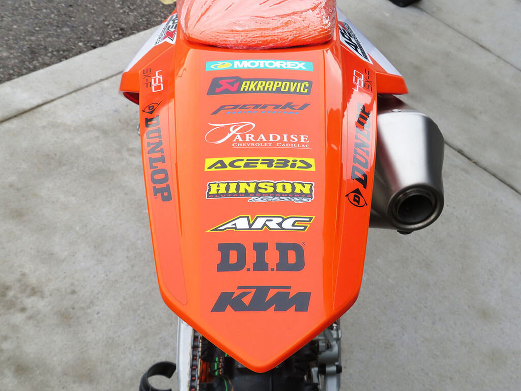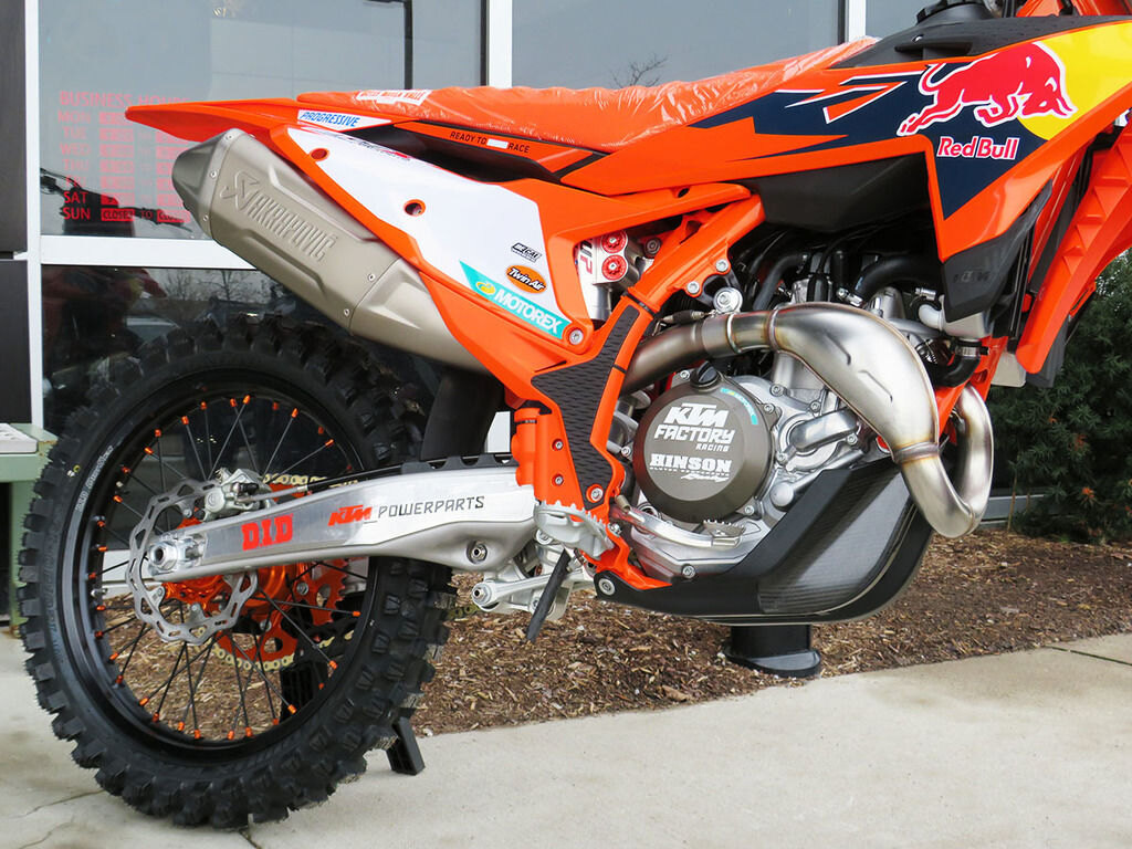 The strongest startWhen the gate drops you need to be the first to off the line in a bid to rule (and make) the roost. The 2026 KTM 450 SX-F FACTORY EDITION boasts one of the strongest and most versatile 4-stroke powerplants in the pits, with its SOHC engine proving to be the perfect example of advanced engineering. With class-leading peak power output, and an overall engine weight of only 59 lb (26.8 kg), you'll leave the competition with more than a little mud on the face. The 2026 KTM 450 SX-F FACTORY EDITION features an updated Akrapovic muffler, intake, and mapping, which increases rideability while meeting the latest FIM and AMA sound regulations. Crafted from lightweight titanium, the muffler's premium finish reflects its high-performance design -- and is available exclusively on this limited-run model.