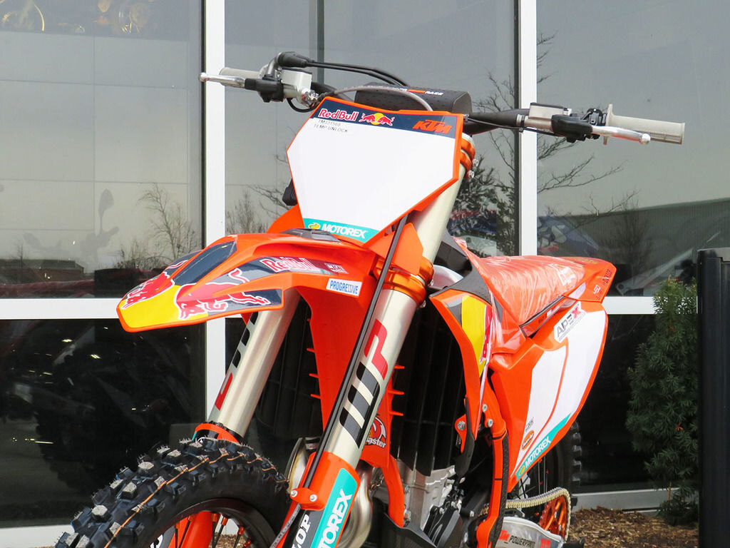Before The GateThe KTM 450 SX-F FACTORY EDITION raises the bar with a factory-level suspension upgrade that redefines READY TO RACE performance. Fitted as standard with the WP XACT PRO 7548 front fork and WP XACT PRO 8950 rear shock, this exclusive setup delivers unmatched precision, comfort, and control. The 48 mm WP XACT PRO 7548 fork features a closed-cartridge design with a unique valve system and friction-optimized internals, offering pinpoint response, rock-solid bottoming resistance, and consistent damping lap after lap. On the rear, the WP XACT PRO 8950 shock incorporates Supertrax technology and a linked damping system to maximize traction, smooth out harsh impacts, and boost rider confidence in every section of the track.