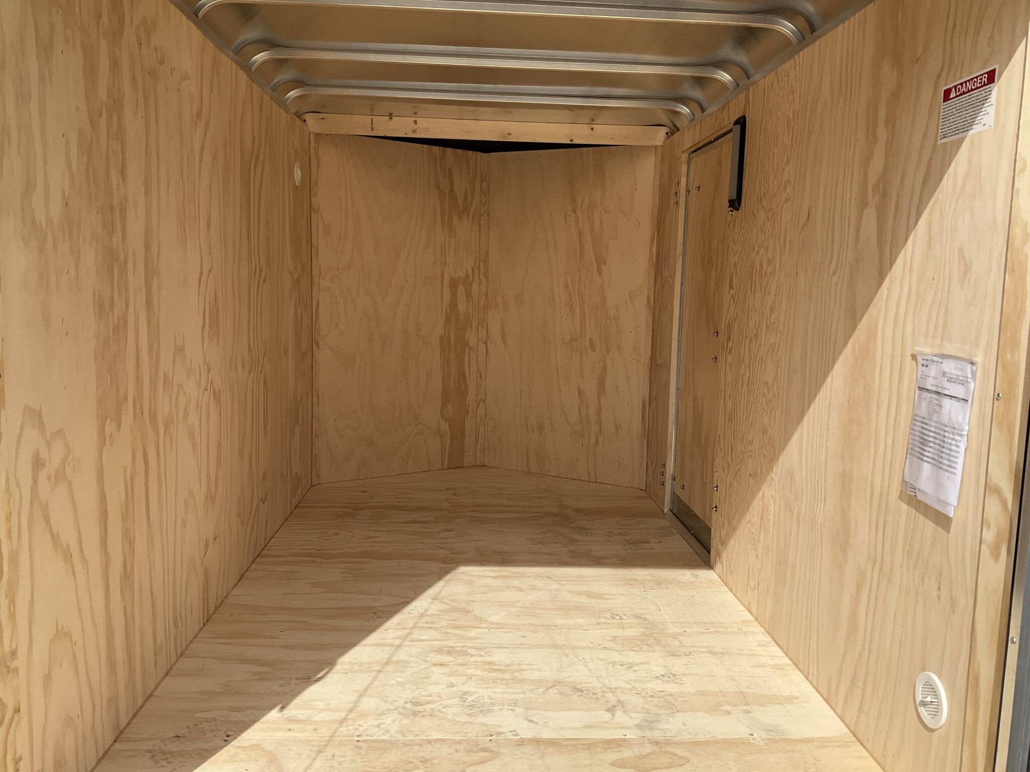2990LB GVWR, 3500LB Dexter Drop Axle and EZ Lube Hubs with 5 Year Warranty, 15 Inch Radial Tires, 24 Inch Aerodynamic V-Nose with Fibreglass Cap, Round Roof, .032 Thick One Piece Seamless Aluminum Roof with Lifetime Warranty, Aluminum Roof Bows, Rear Ramp Door with Spring Assist, Side Man Door, Pair of Wall Vents, LED Dome Light with Switch, 3/4 Inch Exterior Grade Plywood Floor with Lifetime Warranty, 3/8 Inch Plywood Walls, 16 Inch On Centre Wall Posts, .030 Inch Screwless Aluminum Side Skins, Diamond Plate Stone Guard, Meets and Exceeds NATM Requirements