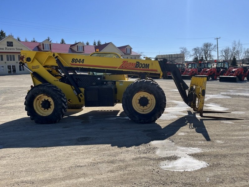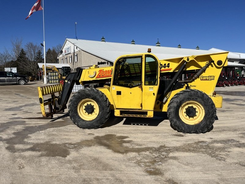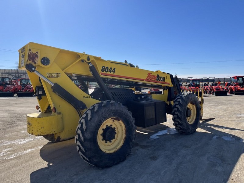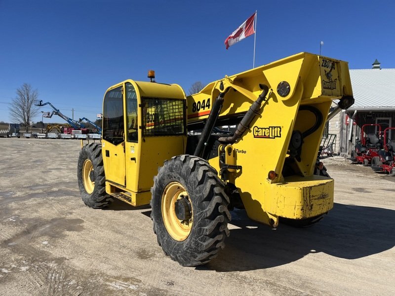 2006 Carelift ZB 8044 zoom boom is powered by Cummins diesel engine. Unit is equipped with manual quick connect and hydraulic tilt forks. Enclosed cab. Maximum lift capacity is 8000lbs and 44 feet of height reach. Machine operating weight is about 24500lbs. 4 wheel drive with 2 wheel, 4 wheel and crab steering. Hour meter reads 5809.