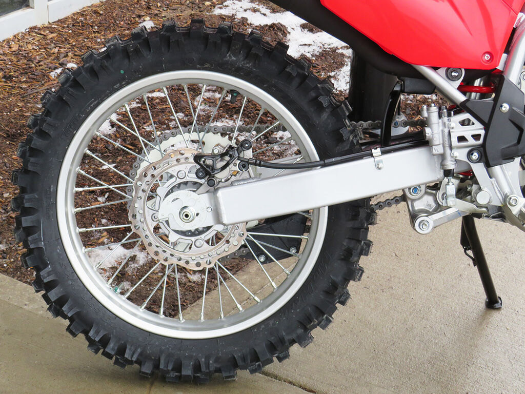 For 2026 the CRF300F features a new 6-speed gearbox, allowing for excellent control at low speeds on more technical trails and a taller gear to manage the higher speeds of wide open trails.