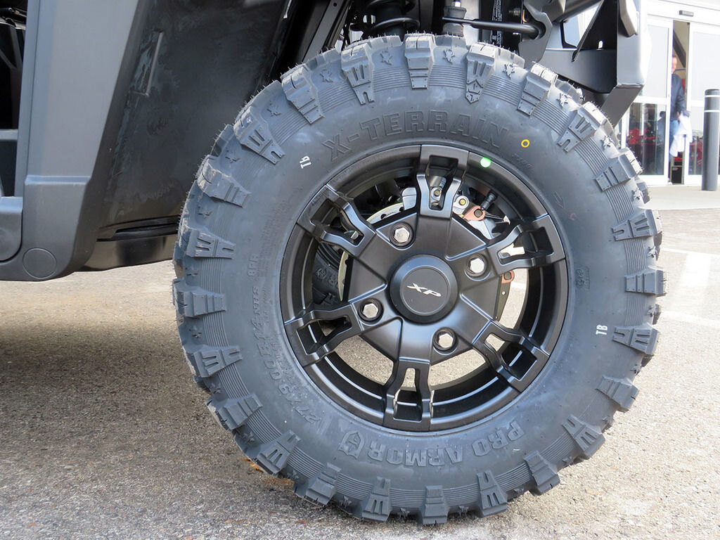 Fend off rocks, stumps, and rough terrain with a rigid one piece chassis, full-body skid plate and massive front bumper delivering maximum protection. 27\" 8-ply Pro Armor X-Terrain tires provide improved durability and a more comfortable and confident ride in tough terrain.