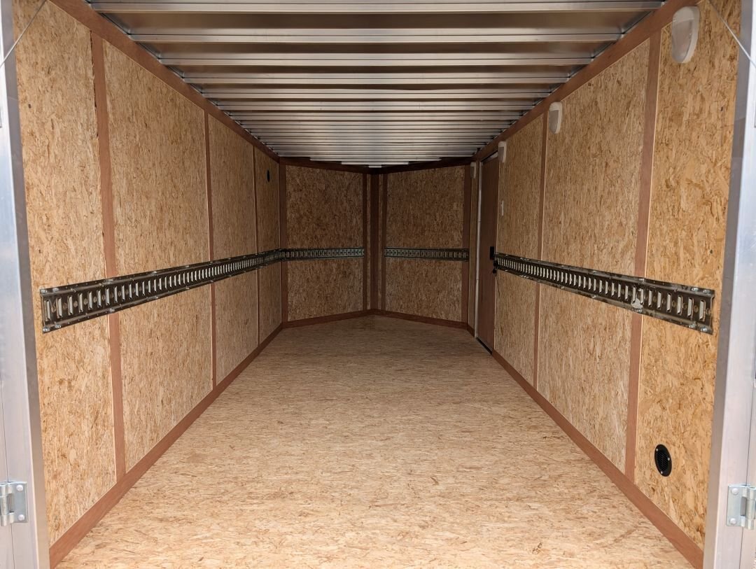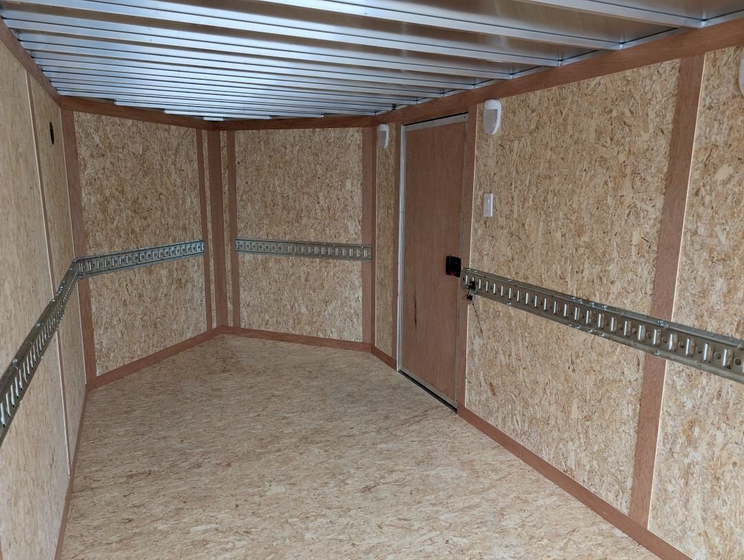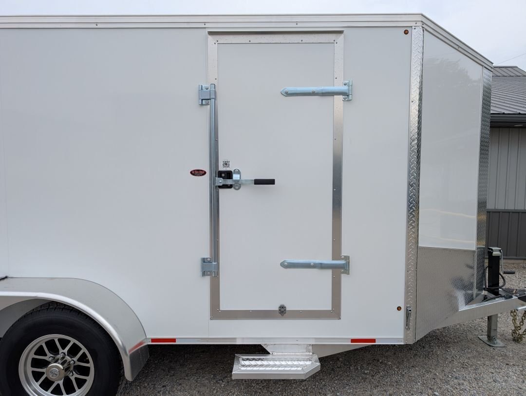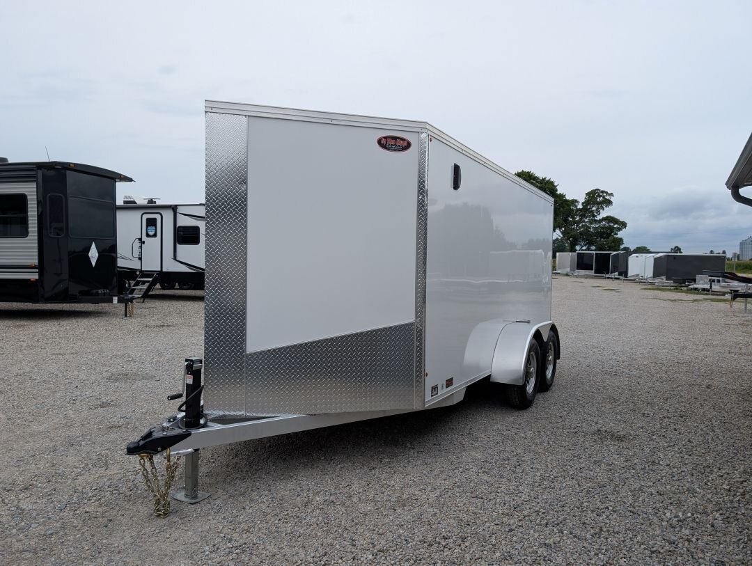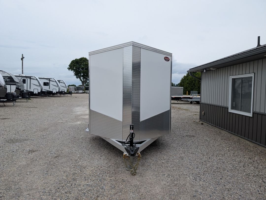 The 2025 Tow-Tek 7x14 Transcend Aluminum Enclosed is in stock at In The Hunt Trailers! This tandem 5200lb axle aluminum enclosed cargo trailer is outfitted with contractor grade materials and ready for your next adventure or jobsite. Finance this unit for as low as $52/week OAC. This unit features the following options: Colour: White - 90 degree V-nose - Tandem 5200lb Axles - 2\'\' x 4\'\' Aluminum Cross Members - 2\'\' x 6\'\' Aluminum Main Frame - Standard Height (6\') - 16\'\' On Center Floor and Sidewalls - 12\'\' On Center Roof - 2-5/16 Coupler - (4) Rechargeable LED Interior Lights - (4) Mounted E-Trac Lengths - Square Man Door With RV Flush Lock & Cambar Lock - HD Safety Chains - Medium Duty Rear Ramp with Spring Assist - 3/8\'\' Drymax Walls - 3/4\'\' Drymax Floors - Smooth Mahogany Trim - One Piece Aluminum Roof
