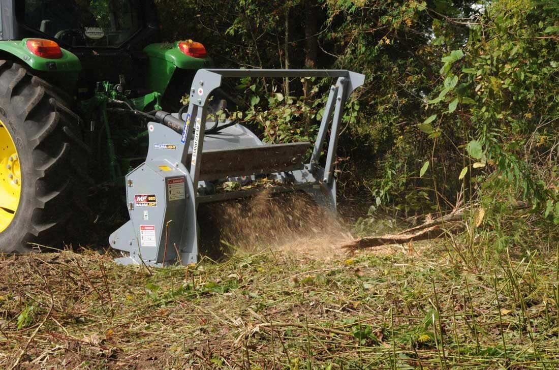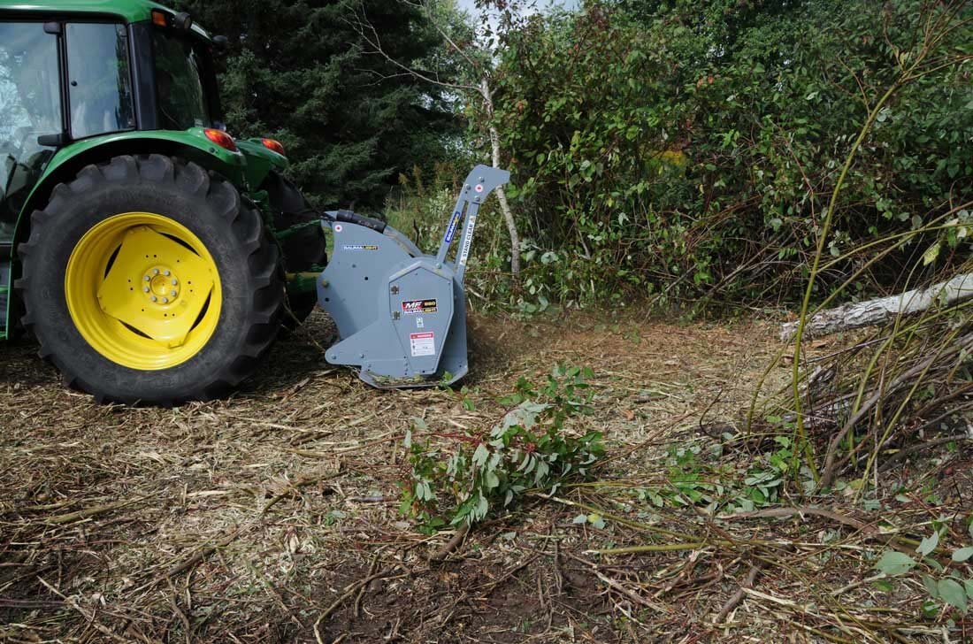 Tractor mounted brush mulchers are not limited to reverse only, drive forward over your mulch and turn it into a finer mulch. Also unique on the MP560 and bigger sizes of tractor mount mulchers is the opening cutting shield. This allows you to adjust for a better, higher angle of attack on bigger brush or keep it closed and control the mulch for even finer results.