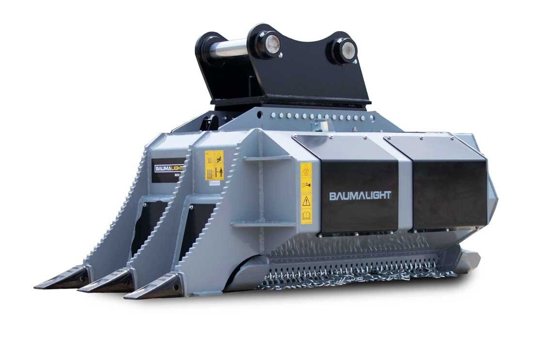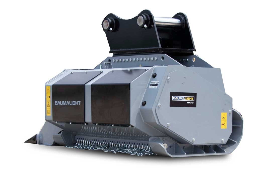 The Baumalight MX948R Brush Mulcher has a 48” rotor and is designed for excavators starting at 12 tons. With a 70” path, the MX948R uses a fixed tooth holder and has 27 heavy duty double carbide tipped teeth (R9000) that are ideal for clearing heavy brush and trees. The MX948R comes with aggressive root rake teeth that are built into the frame. The root rake is perfect for ripping out rocks and moving logs. The unit also has a heavier duty body, built with a low-weight, high-strength AR400 steel and is equipped with replaceable body wear plates.