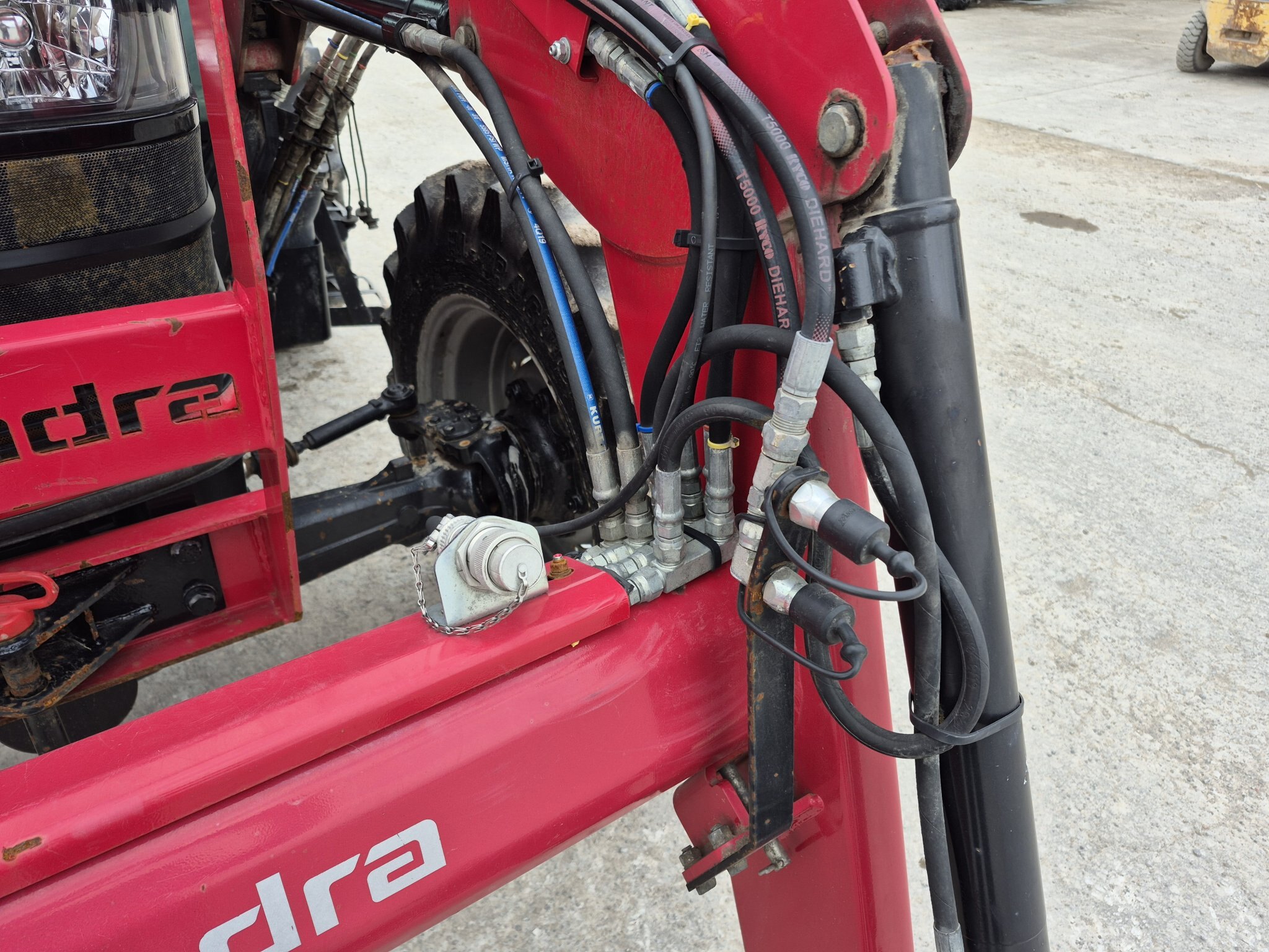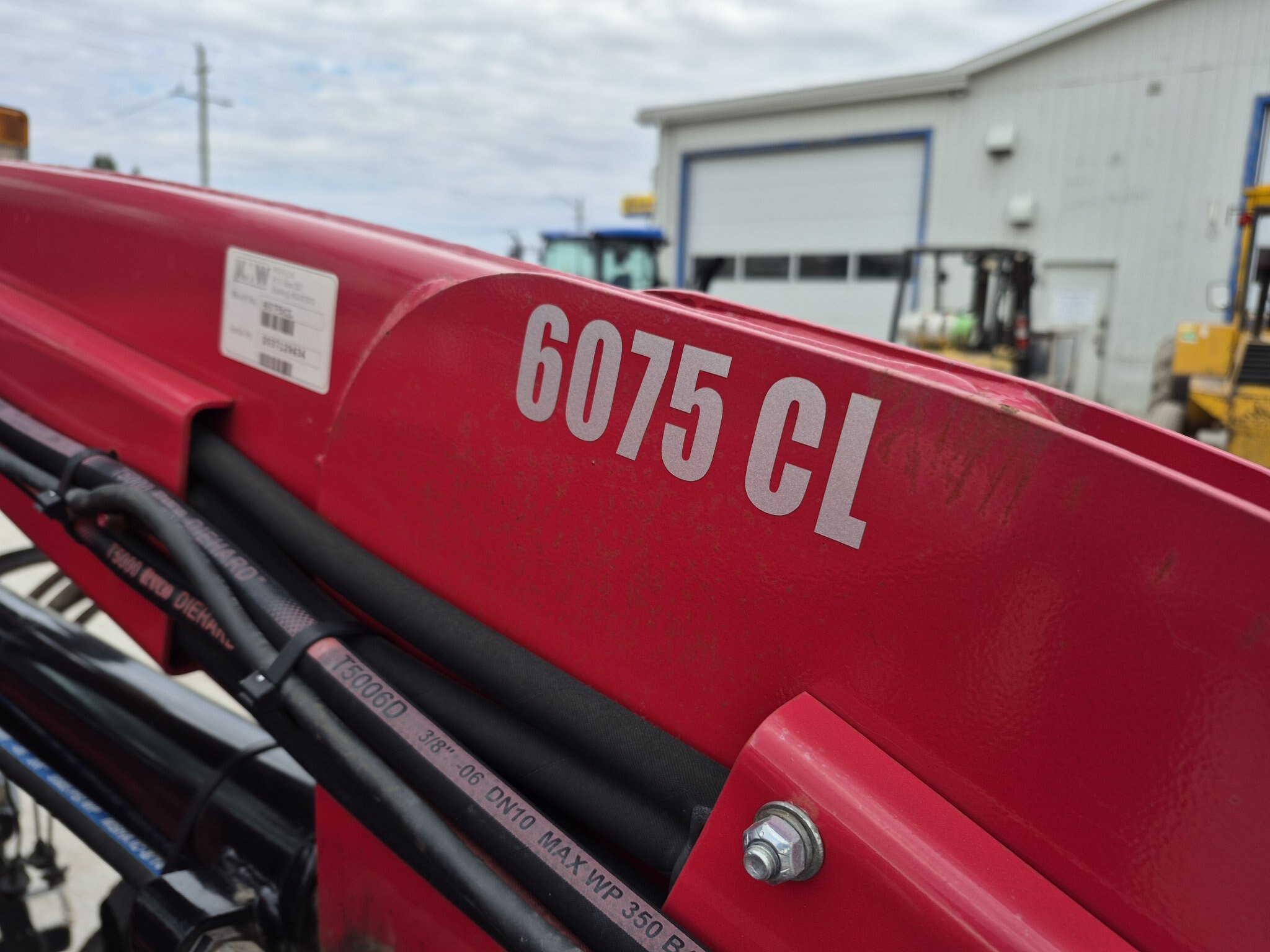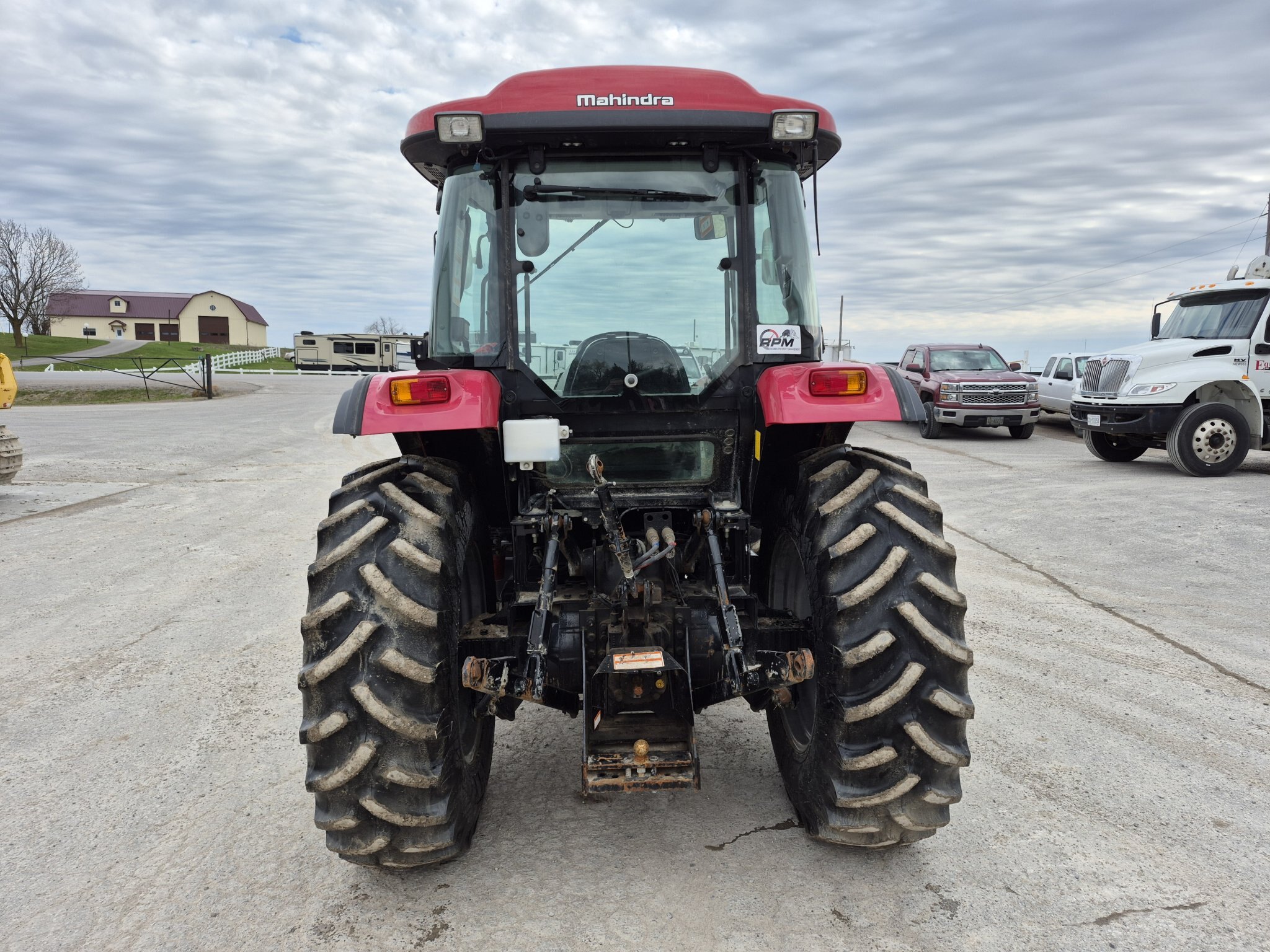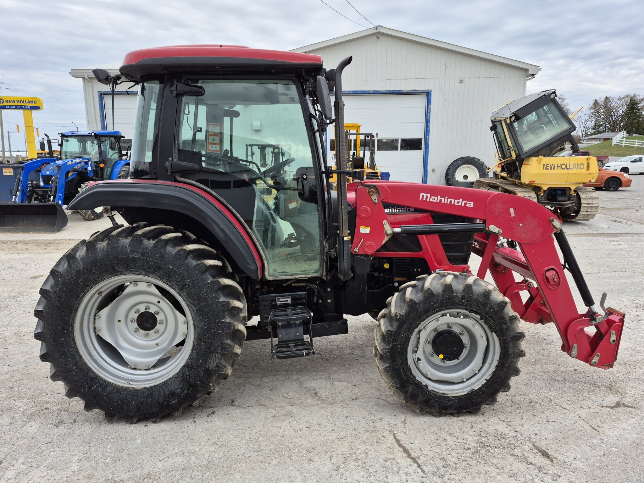 2020 Mahindra 6075, 71 engine horsepower, 61 pto horsepower, Four wheel drive, Cab with heater & air conditioning, 15 forward x 15 reverse speed transmission with Power Shuttle, Radio, (2) sets of rear remotes, 540/540E pto, 3 point hitch, Mahindra 6075CL loader with universal skidsteer quick-attach, 16.9-30 rear tires, 11.2-24 rear tires, 3rd function hydraulics to front of loader from rear remote, 1000 hours