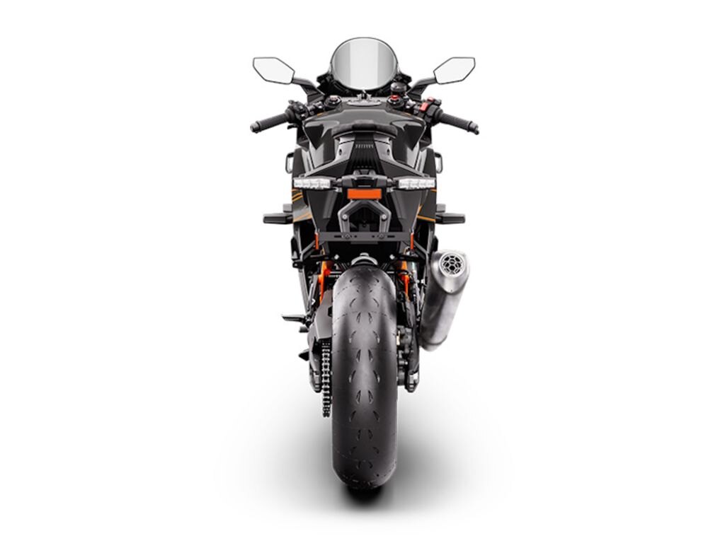 PERFORMANCE & EDGEThe KTM 990 RC R\'s ergonomics are standout. To ensure that the rider is integrated in a way to grapple the Supersport DNA of the bike without compromising day-to-day comfort and practicality, KTM has fashioned a tank shape with 6 contact points. The form of the product will suit a wide range of heights and permits the rider to \'glide\' around the motorcycle while still being able to exert control through legs, knees and arms. The KTM 990 RC R has aluminum clip-on handlebars, adjustable levers and adjustable footpegs: the standard \'street\' setting can be moved 25 mm back and 17 mm higher for a more racing \'track\' poise and more influence for full lean angles.