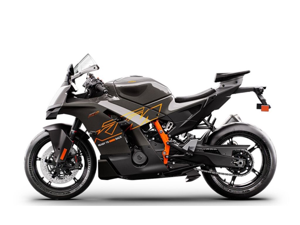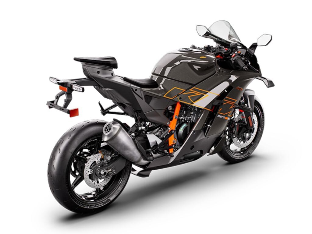 THE BEST LINEThe KTM 990 RC R has two strong characteristics: it\'s a saliva-inducing track tool as well as an acute expression of sports performance for the street with all the criteria necessary. To these ends the chassis geometry is weighted and fixed accordingly with an emphasis of 52.5% to 47.5% front/rear. The offset is measured at 33 mm with a steering angle at 25 degrees (per side) for improved steering sensation and a planted front end. The aluminum diecast swingarm with a linkage construction brings increased flex for better stability, and manageability for bumpy track and street surfaces, of this 405.6 lb/184 kg (dry weight) rocket.