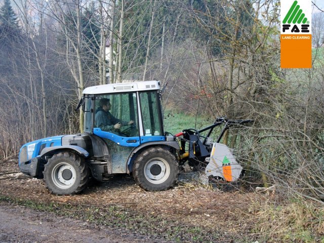 In standard version as forestry mulcher for mulching and subsequent cleaning of bushes and small trees up to a maximum diameter of 12 cm.