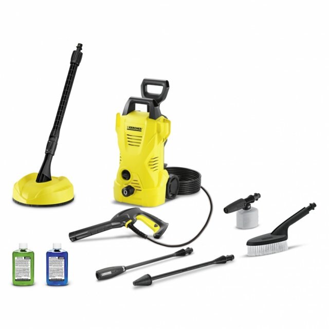 1600 PSI. Our K2 pressure washer with Car & Home Kit makes quick work of cleaning the car or large surface areas. Foaming nozzle, soft bristle brush and surface cleaner included.