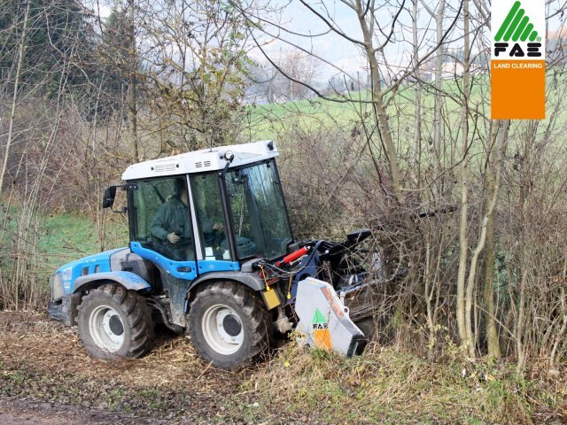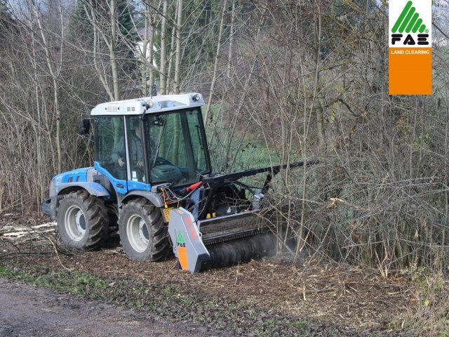 In standard version as forestry mulcher for mulching and subsequent cleaning of bushes and small trees up to a maximum diameter of 12 cm.