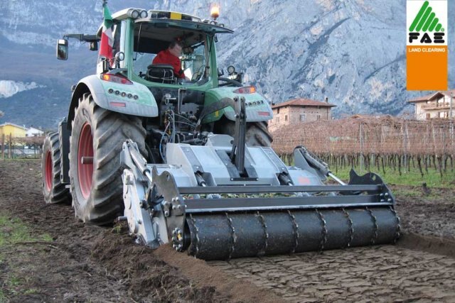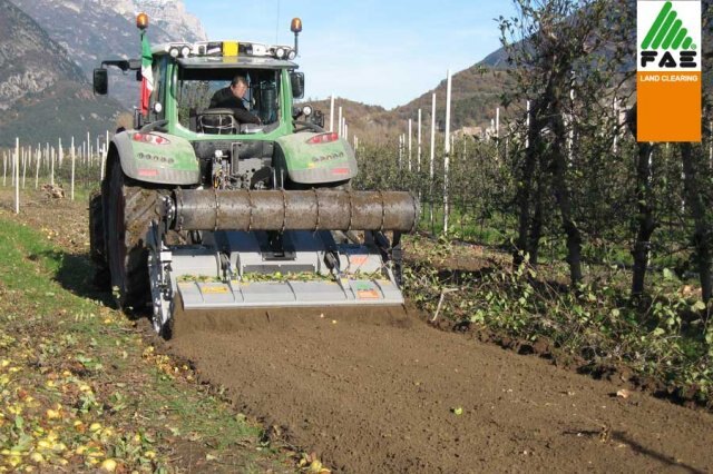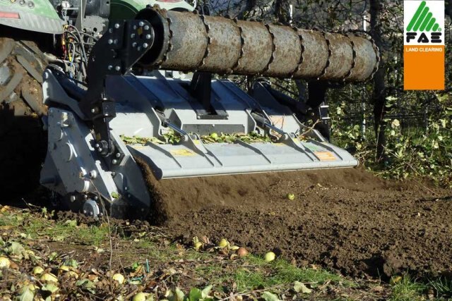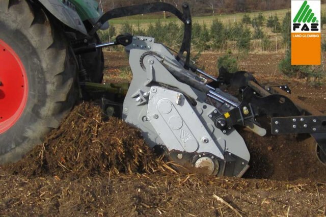 Forestry mulcher and stone crusher with mulching diameter of 40 cm and maximum working depth of 30 cm, for tractors between 180 and 250 HP.