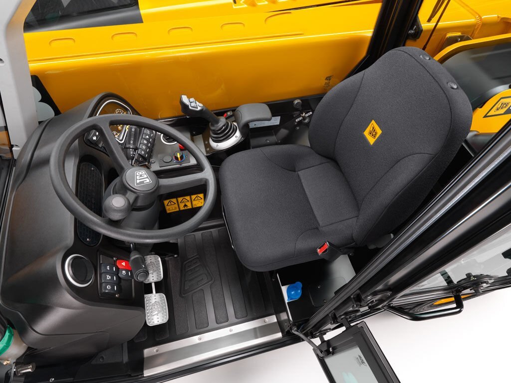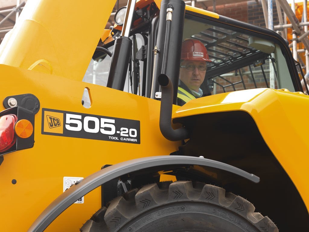 PRODUCTIVITY & PERFORMANCE For excellent traction and performance in difficult conditions, the JCB 505-20TC telehandler is equipped with 4WD as standard. An limited-slip differential is available for maximum traction on slippery surfaces by transferring drive from the spinning wheel to the stationary wheel. With a low height of 6 feet 2 inches and a narrow width of 6 feet, this JCB Loadall telehandler is able to access small operating environments, while its compact wheelbase and large steering lock angles ensure tight turning circles and superior maneuverability. A 74 hp JCB by Kohler engine requires no aftertreatment, and produces 221 lb-ft of torque at 1500 RPM. |
