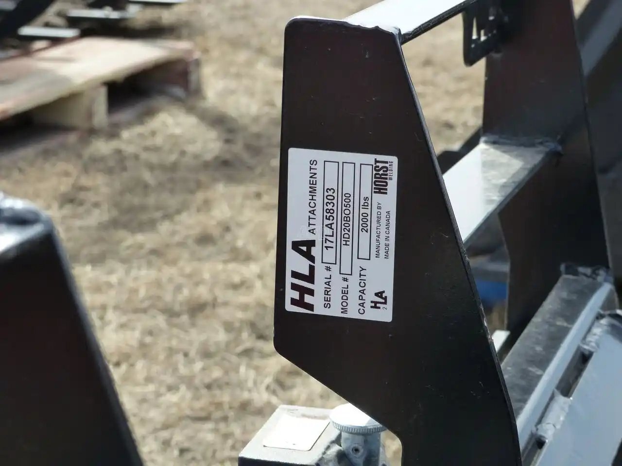 New Pallet fork attachment. Fits Euro/Skid Steer mounts. Comes with upper guard, 48" adjustable tines, 50" carriage width, 1½” x 3 1/8” Class II hook type solid fork lift tines