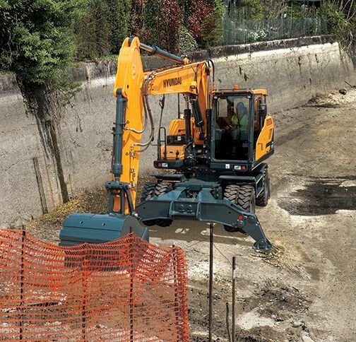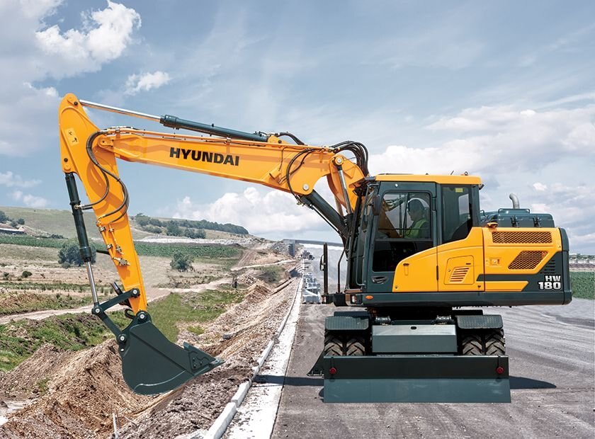 | The Hyundai wheeled excavator product line includes three HW series models and one 9A series compact model to give you an edge in a wide range of on-road and off-road applications. These Tier 4-Final-compliant wheeled excavators deliver improved performance, increased fuel efficiency, superior travel speeds on the road, an enhanced cab and added safety features. |
