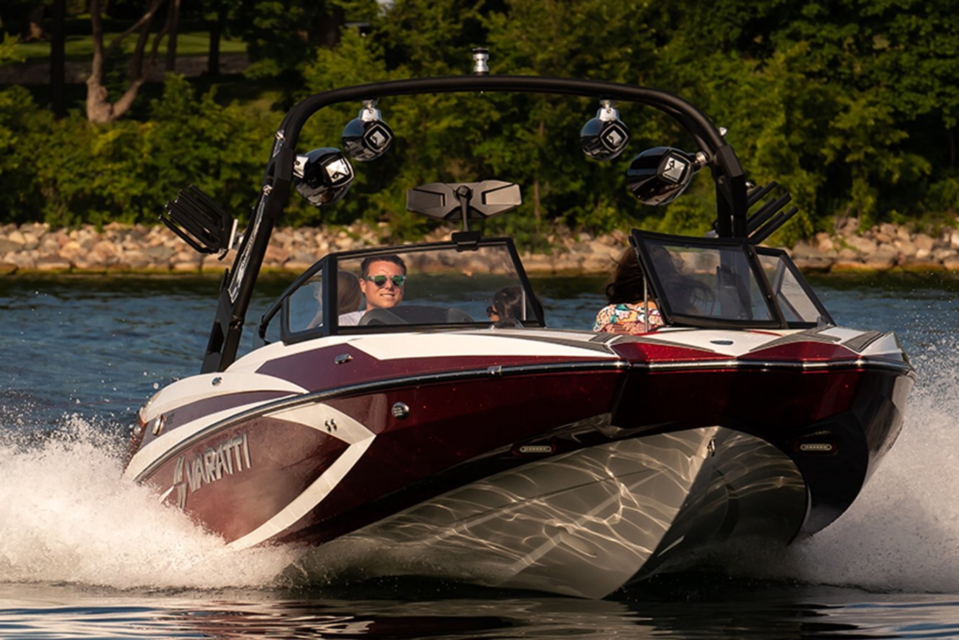 The Varatti Changes The Game! It’s all about shifting the paradigm, and that’s what we do. Just when people thought you needed to have a hefty deep hull to make a large surf wake, the Varatti wake boat changes the game. We created a nimble, sexy-looking boat that surfs beyond belief with 2/3 the weight and a fraction of the ballast – and yet slalom course capable. Less weight means more efficiency. Efficiency means more economy. It also means less bow rise for a better view of the horizon, a comfortable ride for passengers and safer operating conditions. So we shifted the paradigm and created the Varatti™ Z22 surf boat. Any other paradigms need shifting? It’s what we do! |