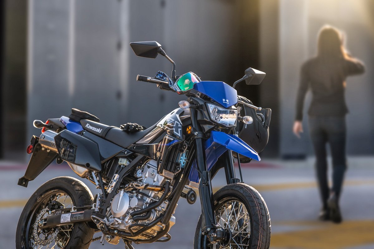 The KLX300SM motorcycle takes the fun to the streets in full Supermoto style. A fast-accelerating engine, paired with light, agile handling, evokes the playfulness within. Suspension, wheels, and brakes are optimised for Supermoto, and KX-inspired bodywork means business. The KLX300SM is quick to steal the scene with equal parts performance and attitude. FEATURING: