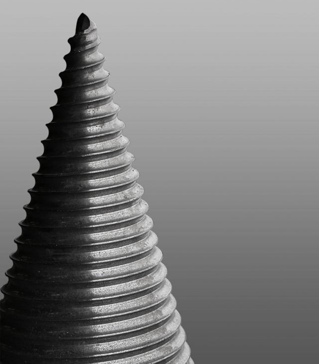 The bit’s bite comes from machining two helical spirals into a solid piece of steel. The bit is then hardened and given an appetite to tear into wood. The two spirals join at the tip for easy boring into the log.