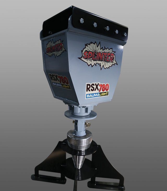 Driven on a 2" hex shaft with an integrated shield that protects the drive from the rigors of splitting wood Splinter is ready to take on pieces of wood and logs up to 8 ft long. Splinter is designed to be mounted to excavators or skidsteers.