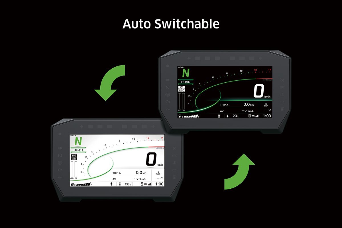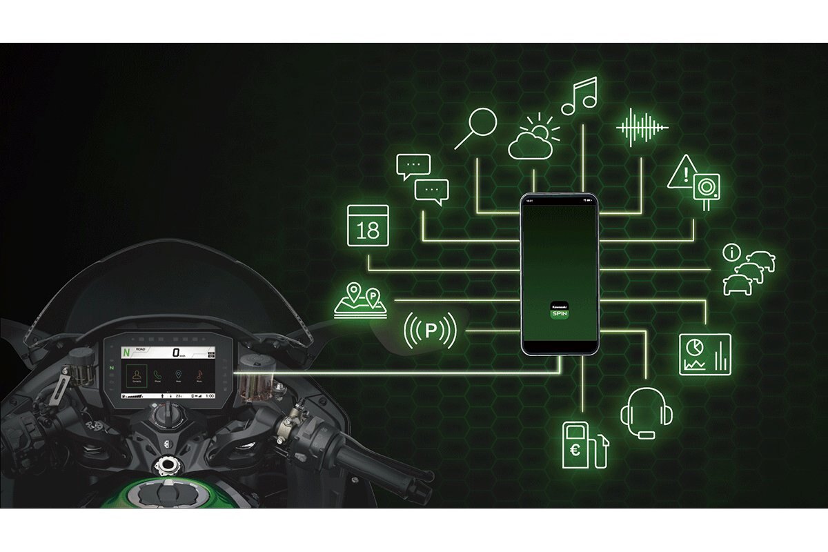 - NEW 6.5” TFT COLOUR INSTRUMENTATION WITH KAWASAKI SPIN SMARTPHONE-BASED INFOTAINMENT APP