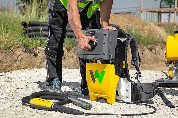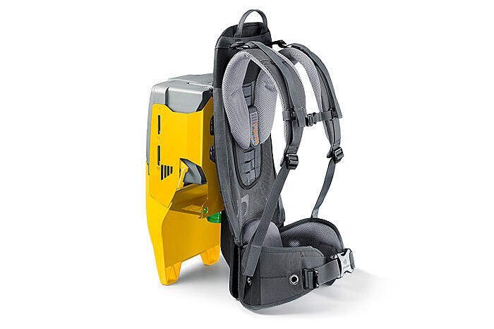 - The battery is easily inserted into the converter backpack and because there is no cord, the operator has flexibility and mobility to move around the job site.