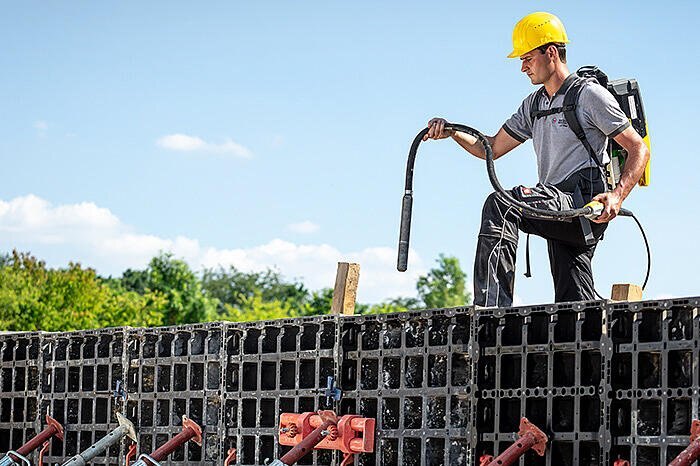 - The vibrator provides high-cycle/high frequency performance for effective consolidation of vertical structures and slabs.