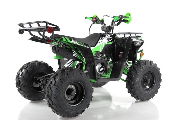 | It is equipped with a quiet and economical YTX 125cc 4-stroke engine and one speed automatic gearbox, neutral and reverse. Thanks to its ajustable speed. it's unstoppable stability and its semi-automatic gearbox, this quad ensures a real safety without compromising the pleasure of driving an all-terrain vehicle. |