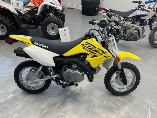 On Sale For $1999 plus tax & licenseMSRP $3099 LAYING THE FOUNDATION OF RIDING FUNThe 2023 Suzuki DR-Z50 is the ideal way to introduce young beginning riders to the sport of motorcycling. This compact, Suzuki-built mini-bike brings ease and convenience to riders just getting started on two wheels. With an automatic clutch, three-speed transmission, electric starting, and a low 22-inch seat height, this race-styled bike will help build confidence and riding ability for young supervised riders. The 49cc engine delivers a smooth, controllable power band, and adult supervisors can adjust its power level so young riders can learn at a proper pace. This motorcycle can be in the family for years, thanks to its rugged construction and sturdy 10-inch wheels; the Suzuki DR-Z50 combines a reliable engine with quality running gear that’s built to last. The DR-Z50 is the ideal way to get your whole family involved in motorcycling! |