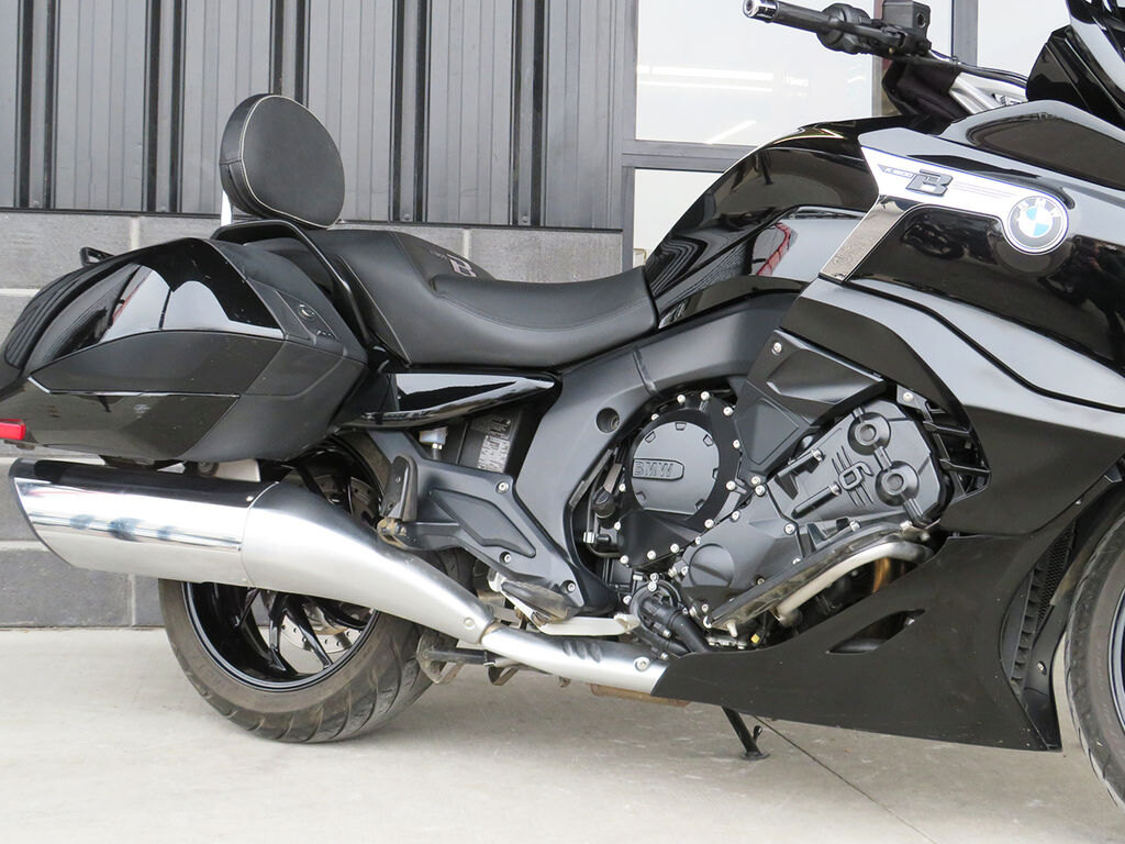 Largely based on the K 1600 GT and GTL, the K 1600 B was developed specifically with American riders and great open American roads in mind. It features a spectacular backward sloping linear design with a specifically engineered rear section to reflect the characteristics of a grand American tourer. This not only makes the bagger appear low-lying and slender, but a new rear frame also contributes to this aesthetic by significantly reducing the height of the passenger seat.
