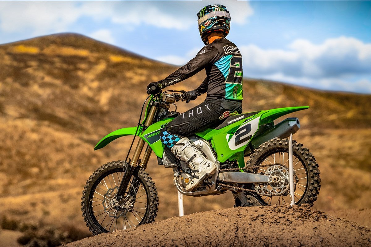 | With more Supercross and Motocross championships than any other manufacturer, the KX name is synonymous with winning. The KX450 motorcycle represents the flagship of the KX lineup, built with the sole purpose of dominating the track. Over the past four decades, we’ve learned what it takes to win and stay on top. Our dedication to building the ultimate machine is undeniable, and the KX450 represents this to the fullest. |