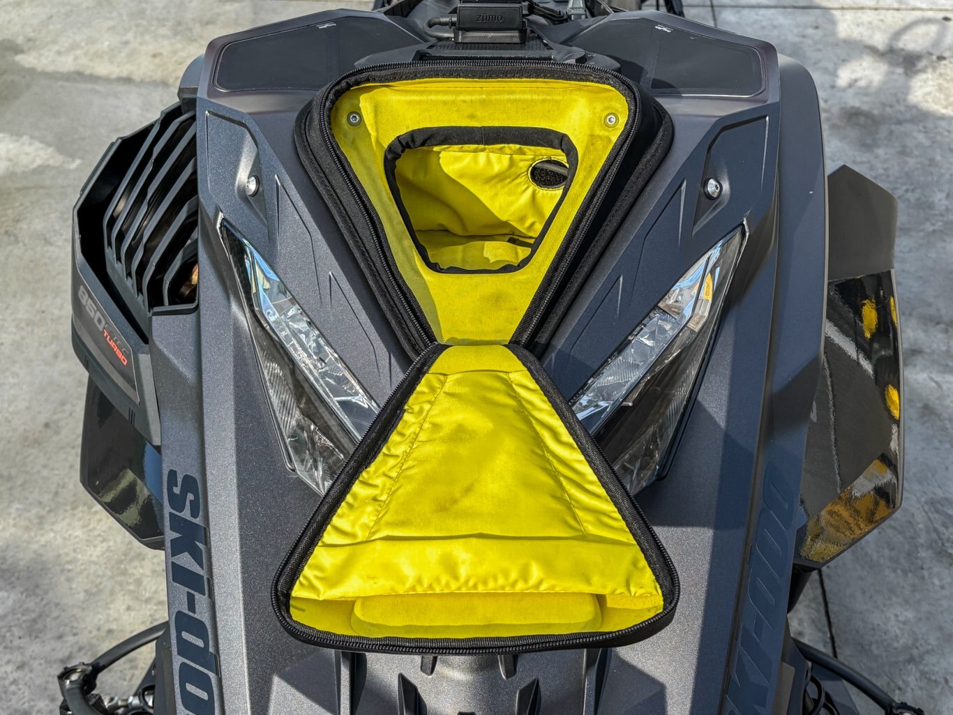 SHORT TUNNELDROP THE DRAG Go more places with a shorter tunnel length allowing optimal maneuverability in deep snow thanks to exceptional snow evacuation. Standard rear lightweight snowflap with LinQ-ready attachment points to attach optional removeable long snowflap. |