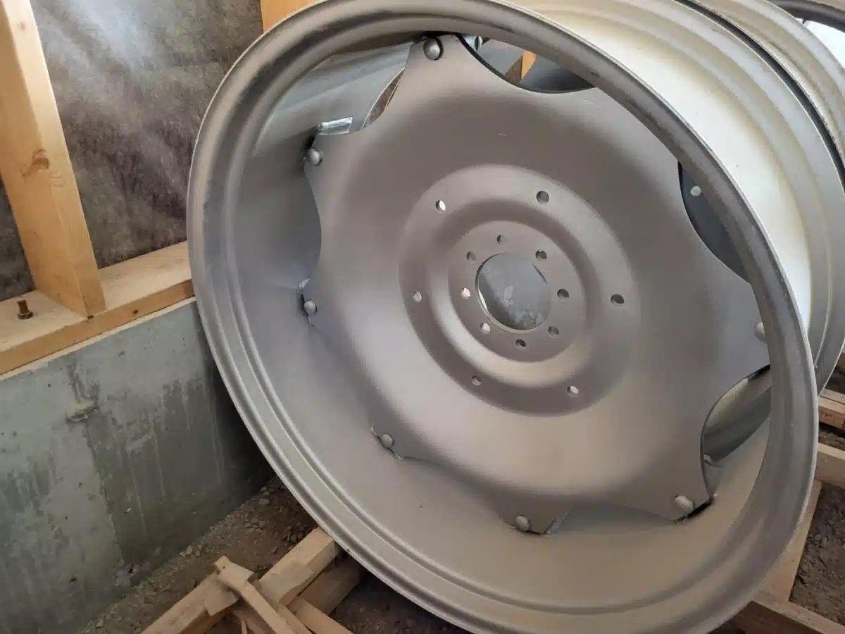 Small 8 bolt pattern, 6" pilot, 8" bolt circle, JD yellow also available, fits 18.4x38 tire, price per rim Stock # S1638-S8. *Due to stock levels rapidly changing, please call or email to ensure we have stock!*