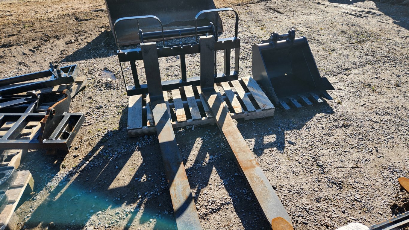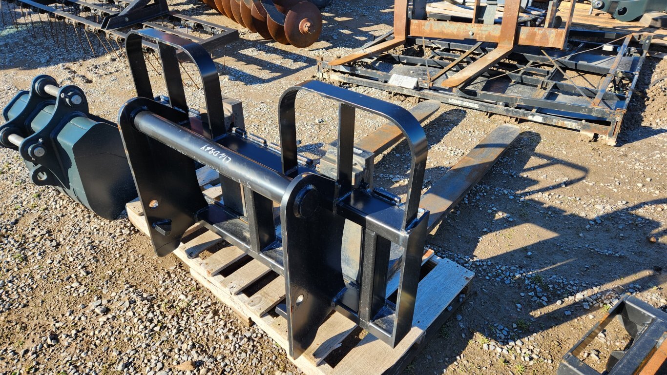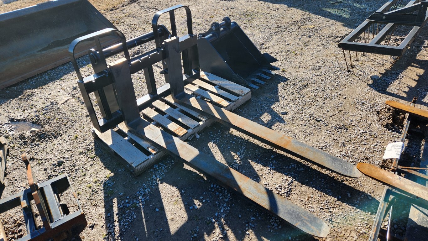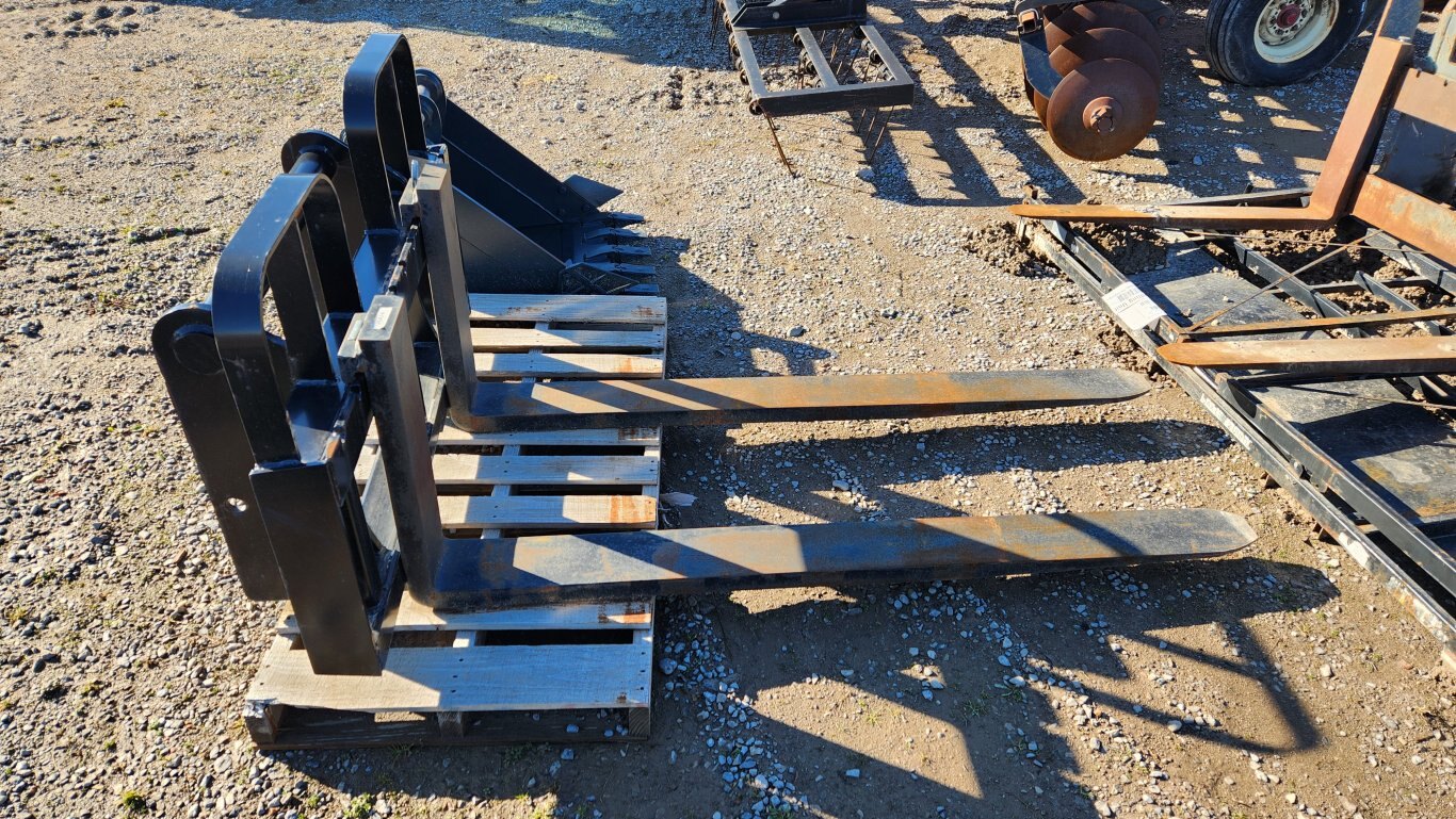 BRAND NEW HLA HD100MAQT pallet forks, Manitou quick-attach, 10000 lb. capacity, 72 inch tine length, 2 inch x 6 inch Class III solid tines, Guard, Sliding adjustable tines, 50 inch wide carriage