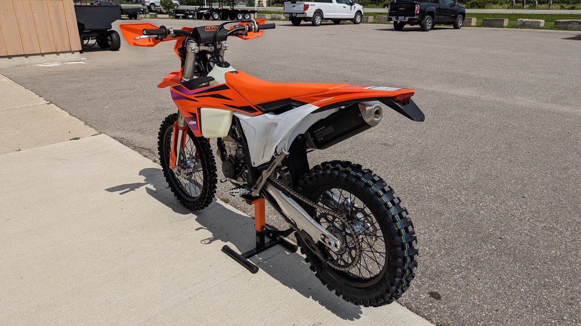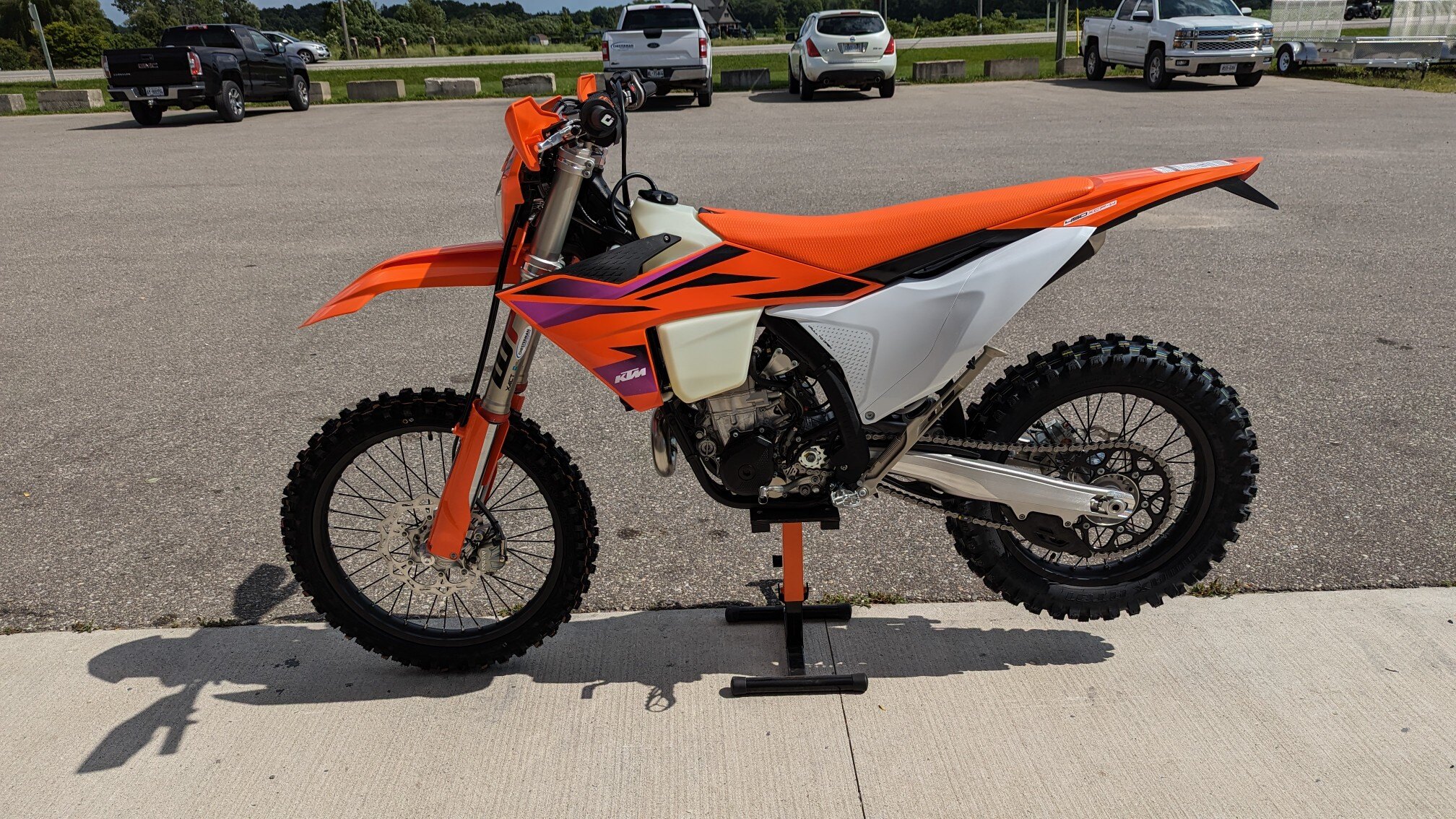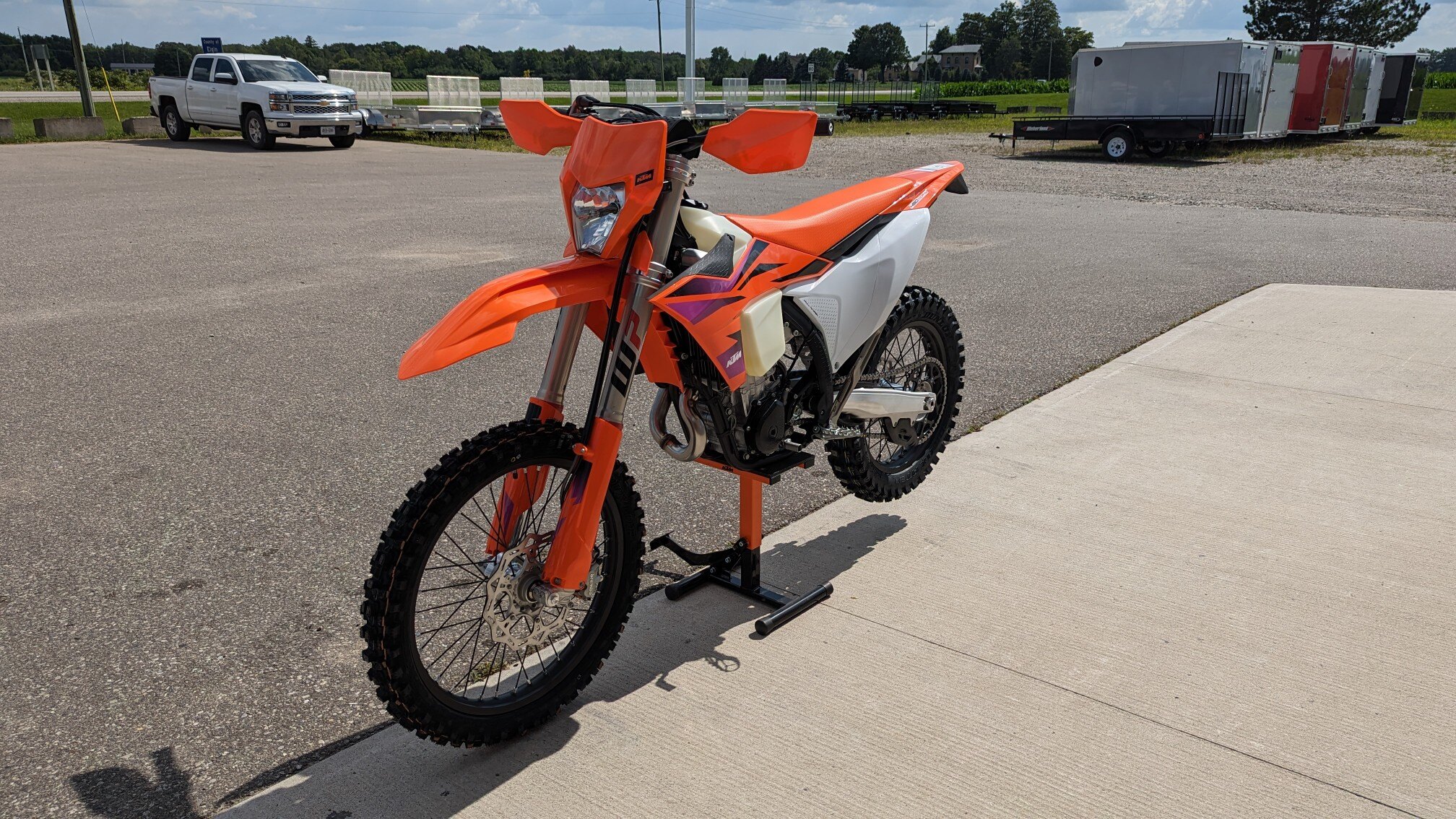 The 2024 KTM 450 XCF-W rolls into the open class with a renewed appetite for finding the limit. Boasting an all-new chassis, suspension, race-proven bodywork, and rider-focussed ergonomics - not to mention one of the winningest 450 cc engines in the class - the KTM 450 XCF-W is ready to launch off the line with the podium firmly in its sights.
