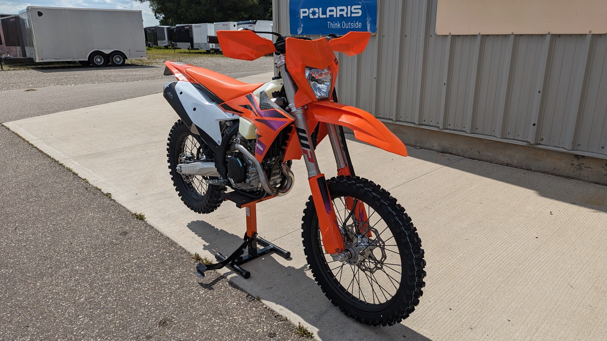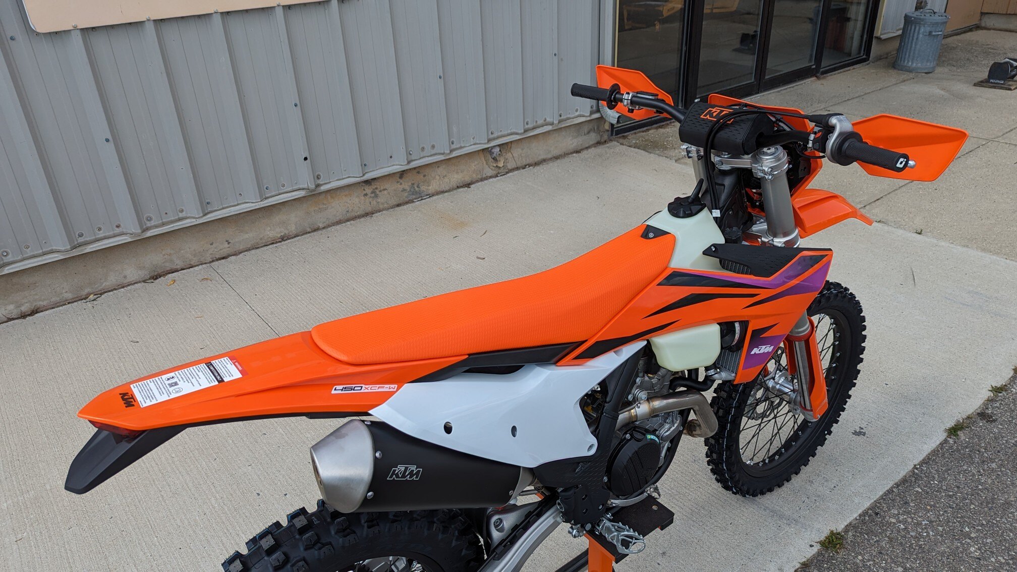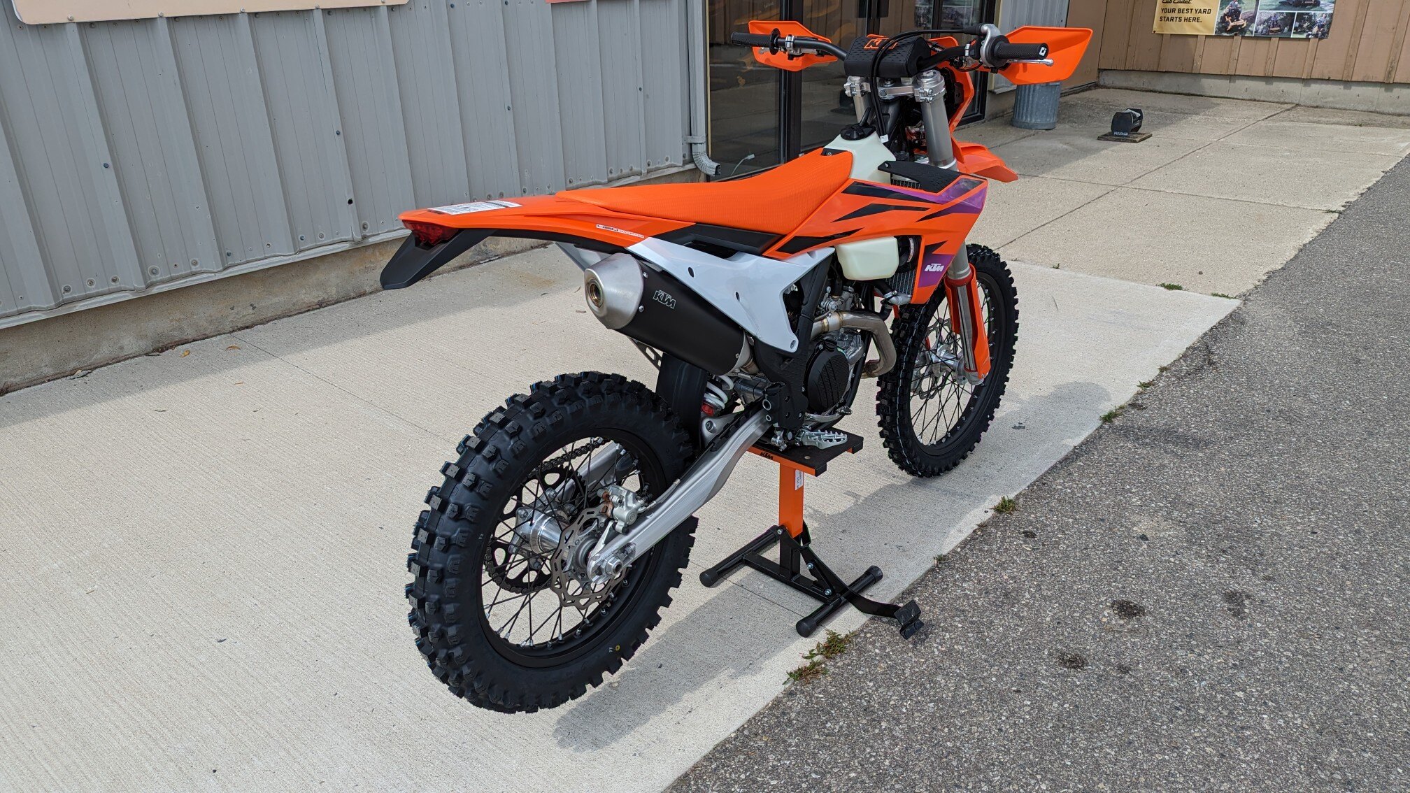 The 2024 KTM 450 XCF-W rolls into the open class with a renewed appetite for finding the limit. Boasting an all-new chassis, suspension, race-proven bodywork, and rider-focussed ergonomics - not to mention one of the winningest 450 cc engines in the class - the KTM 450 XCF-W is ready to launch off the line with the podium firmly in its sights.