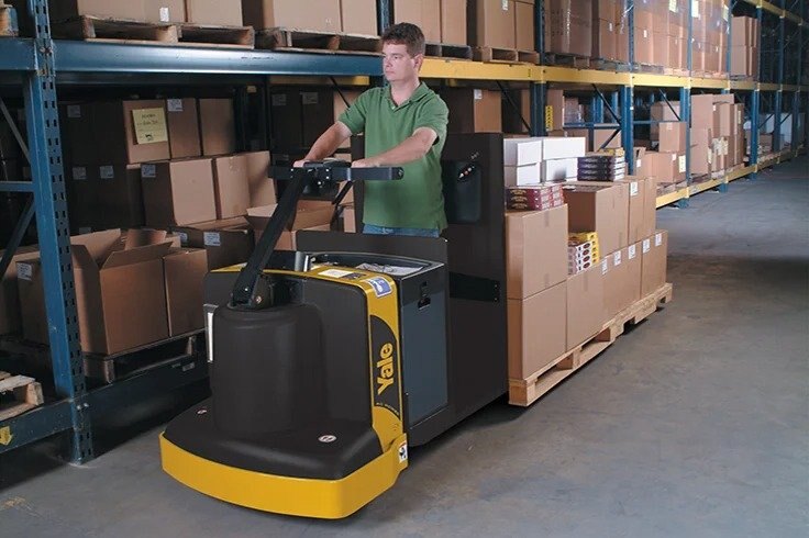 Yale® center rider pallet jacks are designed for maneuverability, speed and reliability in low-level order picking and pallet transportation between dock and storage locations.