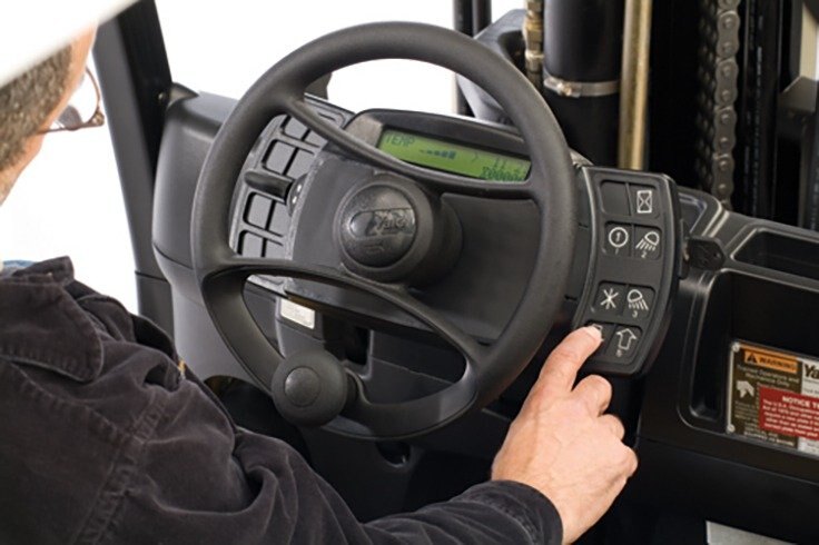 - Infinitely adjustable steer column helps operators of all sizes find comfortable operating position