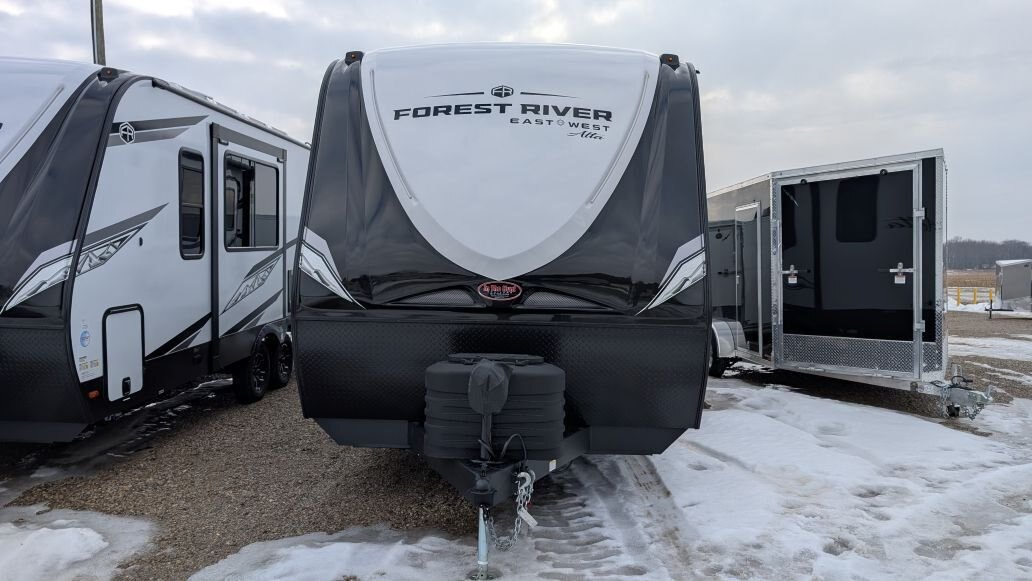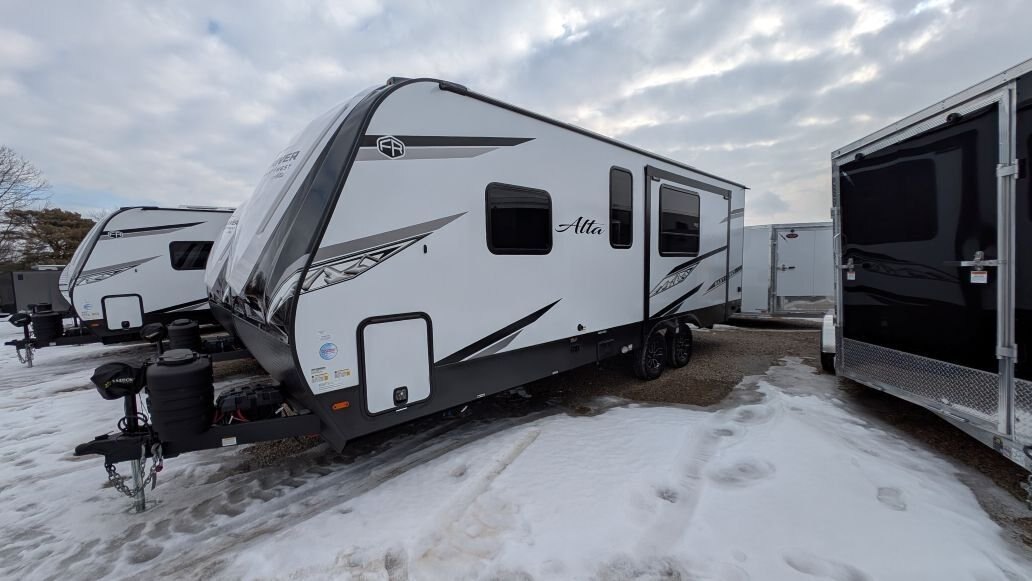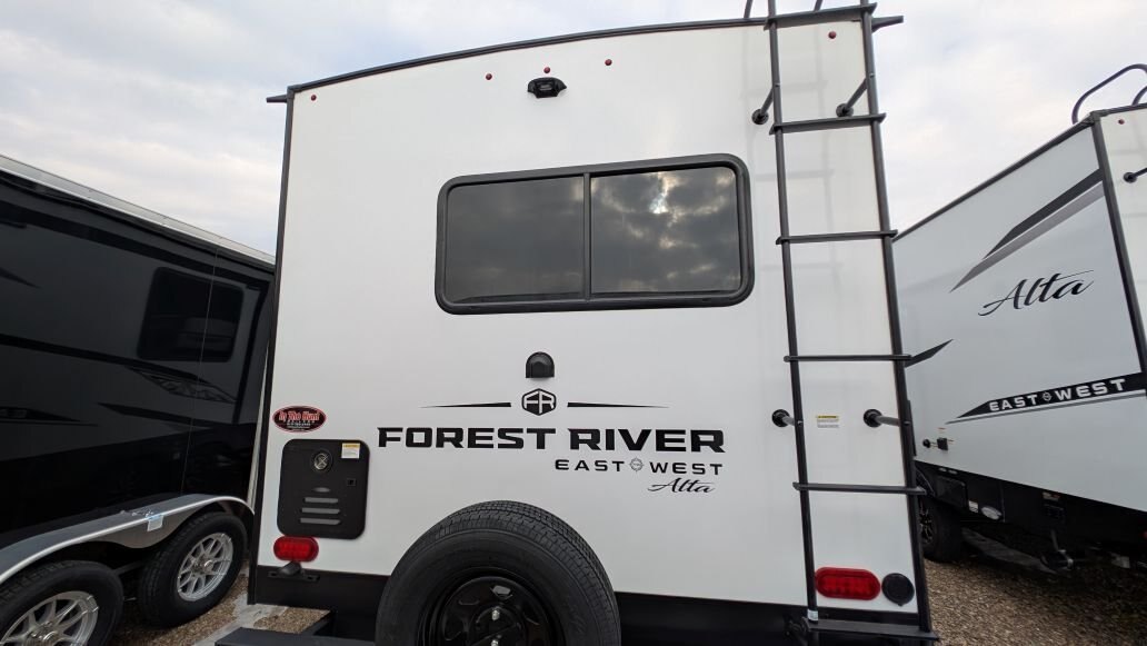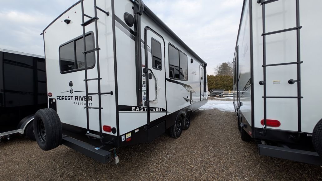 REG: $61,995 SALE: $49,995 + DON\'T PAY TIL MAY 2026 + FREE STORAGE UNTIL MAY The 2025 East to West Alta 2375KRK is in stock now at In The Hunt Trailers. This beautiful rear kitchen couples coach is ready for your next adventure! Financing available for as low as $101/week OAC. In The Hunt Trailers is proud to offer Alta Travel Trailers by East to West. Designed with your comfort and convenience in mind. From countless standard features to lightweight aluminum construction and smooth fiberglass sides, we strive to offer you a product that will make your camping experience enjoyable for the whole family. This rear kitchen, single slide double entry with king size front bedroom layout is sure to be a hit. Outside you will find a full length awning, power stabilizer jacks, docking station, slam latches on cargo drawers, solar prep\'d, aluminum rims and rear ladder. Inside this double entry unit you will find 81\' interior height, ducted hear and air conditioning, 10.7 cu.ft refridgerator, full 48\' dinette, full rear kitchen with stainless sink and high neck faucet, stainless microwave and 3 burner stover with over. Power up/down 40\' large screen LED television with sound bar, electric fireplace, mid bathroom provides lots of storage with sink and vanity and 30X36 shower with full surround and skylight. Up front you will find a 72X80 king size bed and second entrance. Located at 12711 Furnival Rd. Rodney ON. Serving Windsor, Chatham-Kent, Elgin County, London Middlesex, Kitchener, Cambridge, Waterloo, Hamilton, Niagara. Conveniently located in Rodney between the shores of Lake Erie and the blue waters of Lake Huron.