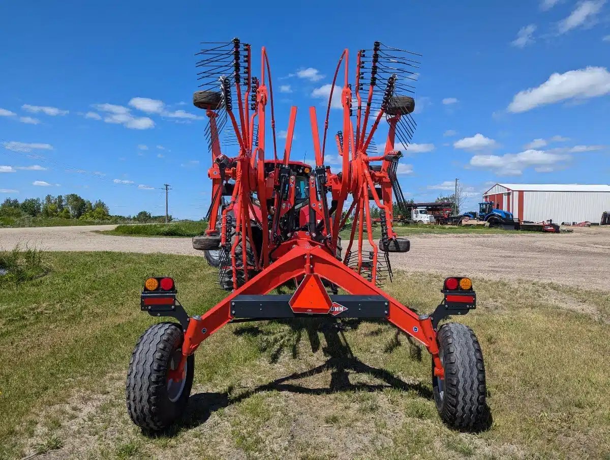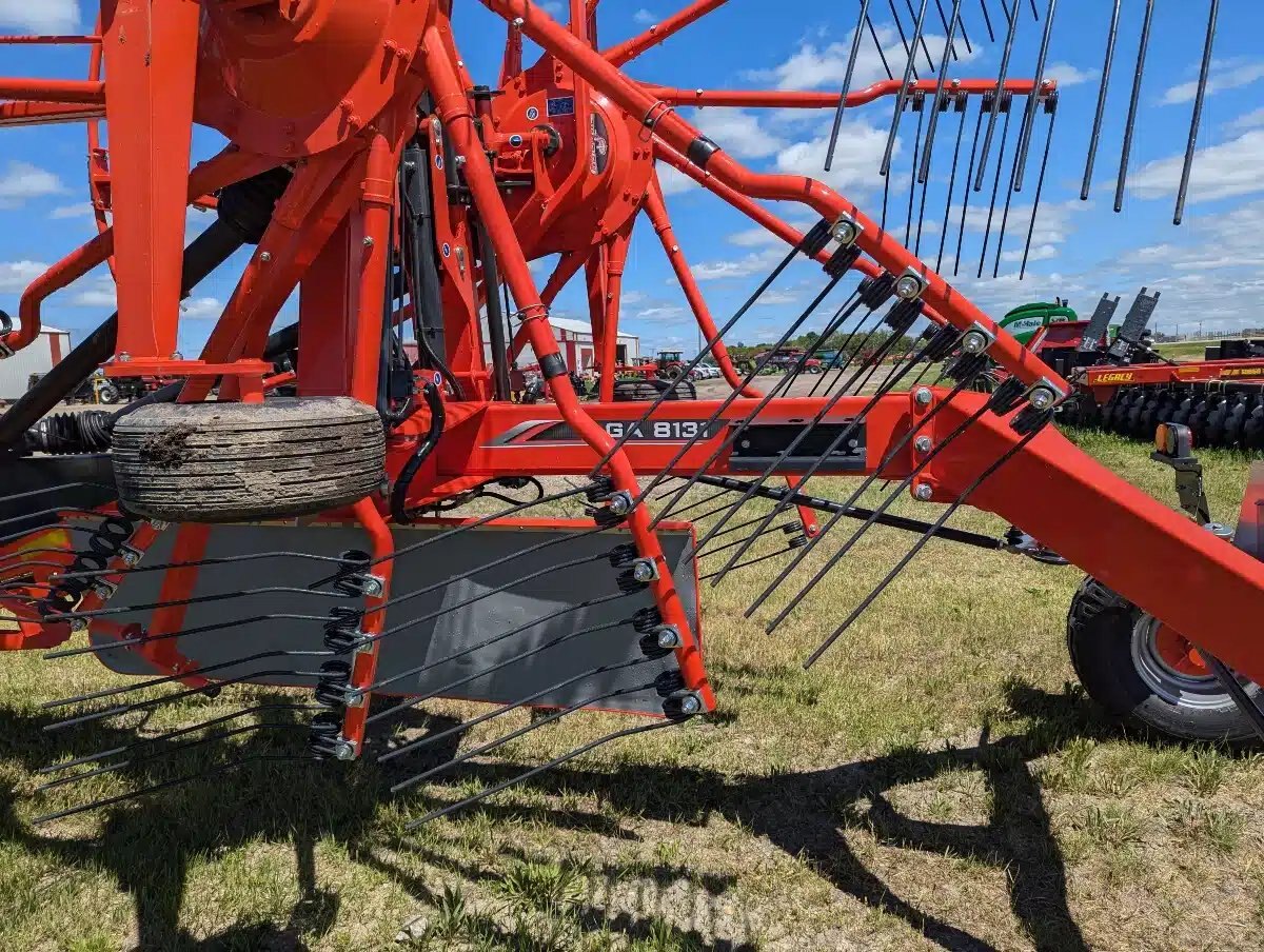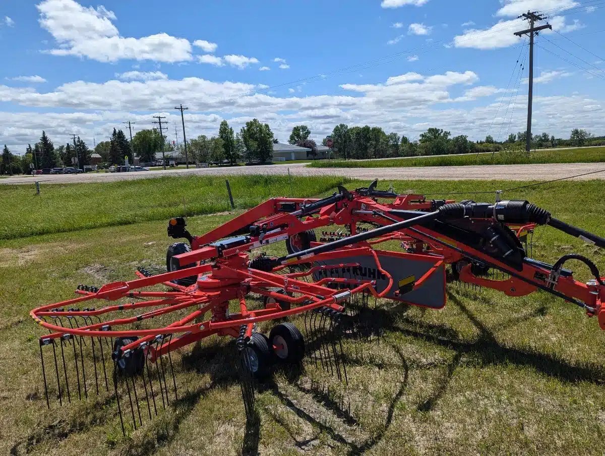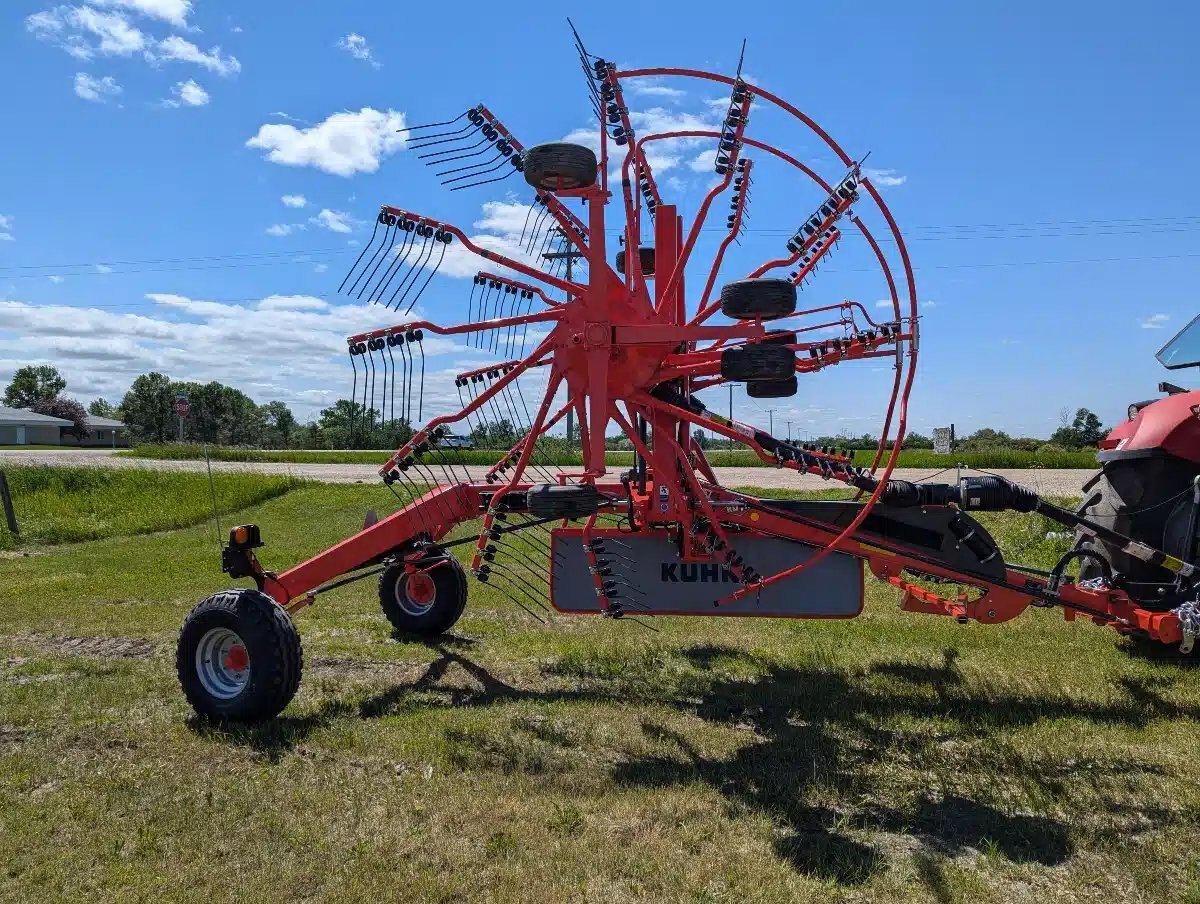 2024 Kuhn GA 8131 Twin-Rotor Rotary Rake. 540 PTO, Max working width 26'3". Lighting Kit, Rotor Flotation. Wheel Set 11.5/80-15.3. The GA 8131 central-delivery rake, with high production and excellent raking cleanliness, creates the ideal windrow for forage chopping and making round or large square bales.