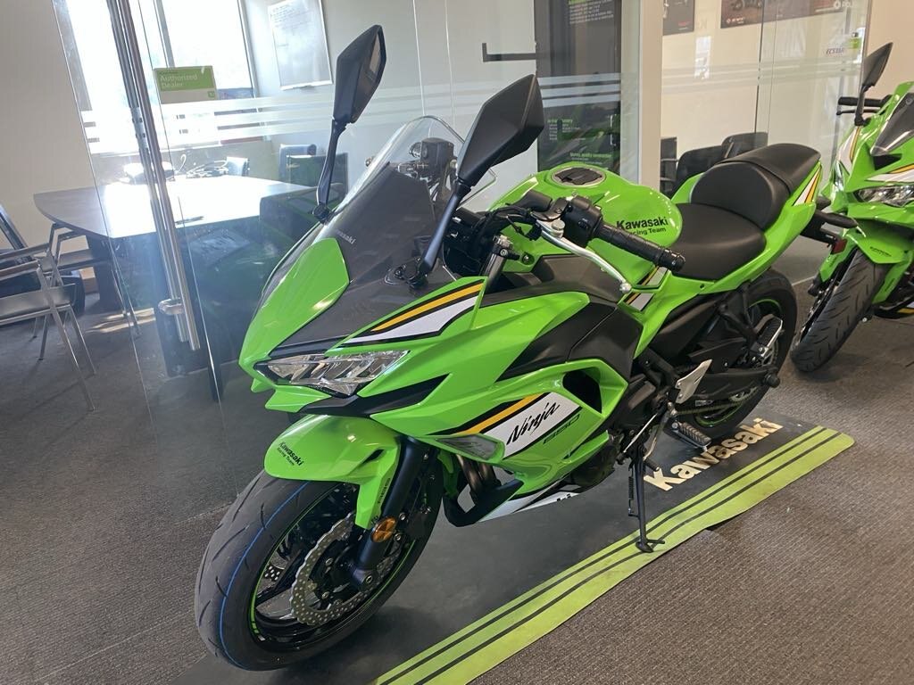 | Built to embody Ninja sportbike lineage, the Ninja 650 motorcycle comes packed with a sporty 649cc engine, next-level technology and sharp styling. Unmistakable sport performance is met with an upright riding position for exciting daily commutes, while a supreme level of attitude reminds you of its legendary heritage. |