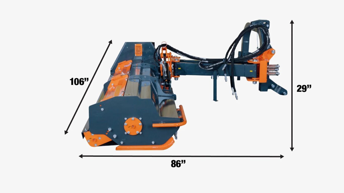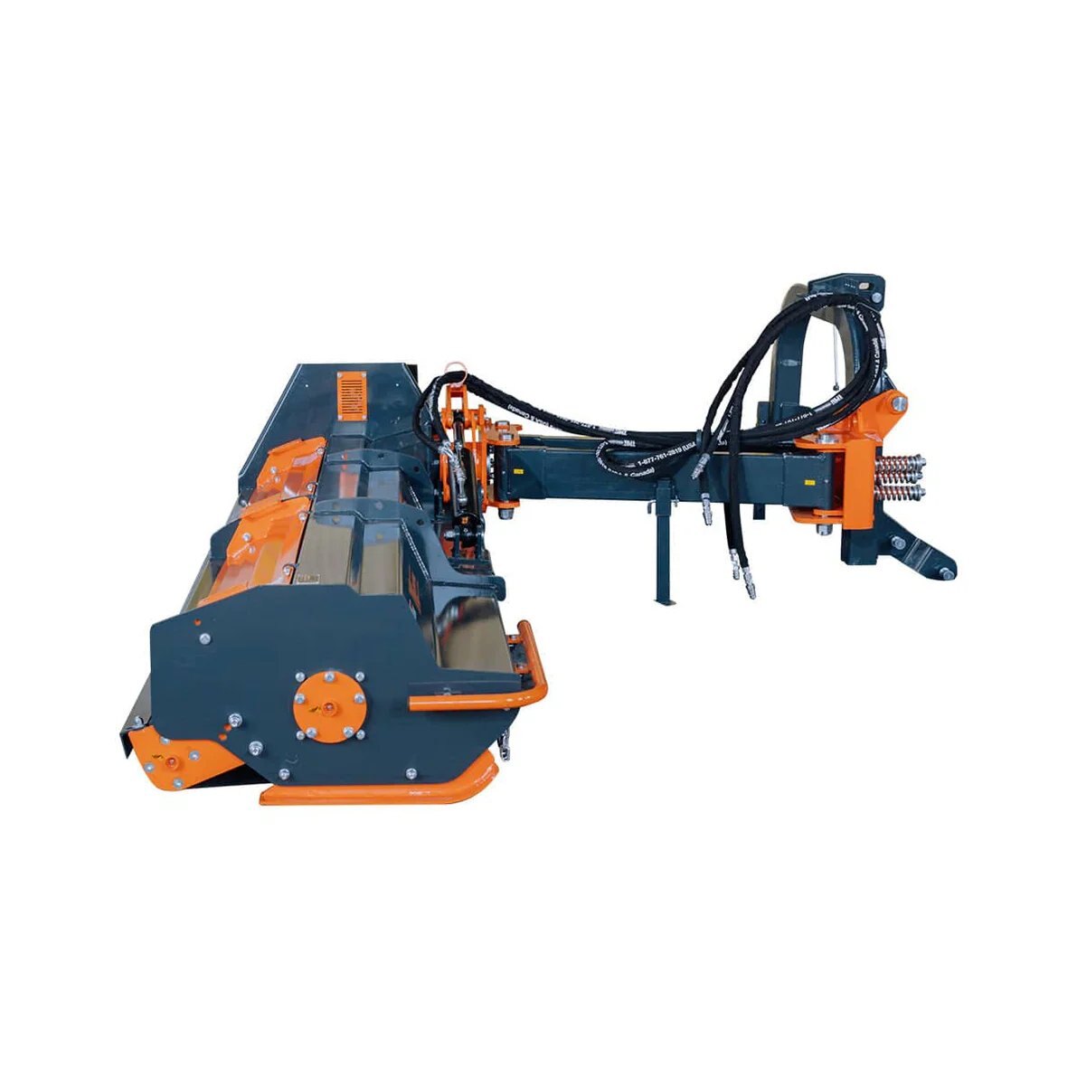 The TMG-TFMO100 Offset Ditch Bank Verge Flail Mower allows you to effortlessly tackle tough terrains with ease. Built for heavy-duty tasks, it has a heavy duty 2100 lb frame and a robust CMR gearbox from Italy, giving you a performance you can rely upon. With a 100” working width and a powerful hammer rotor, it handles all your cutting needs with precision and efficiency. Designed for long-lasting use and ease of maintenance, the mower includes an adjustable rear opening panel and a safety-equipped PTO shaft. It's equipped with a double spiral rotor, and has also passed stringent dynamic balance tests. Ideal for farms, estates, and professional landscaping, the TMG-TFMO100 guarantees powerful cutting performance across varied terrains, making it a versatile choice for maintaining large properties. |