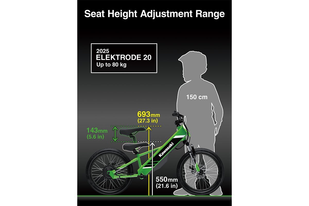 | From the Kawasaki global powersports brand comes the Elektrode 20 and the Elektrode 20FS electric balance bikes, designed for ages eight and older. Built with long run-time*, top speed up to 39 km/h*, and quick acceleration, these bikes are engineered to have the most fun. No matter where you’re headed, easy adjustability and smooth handling makes everyday riding more enjoyable. With the Elektrode 20 and Elektrode 20FS, it has everything you need to make every day electric. |