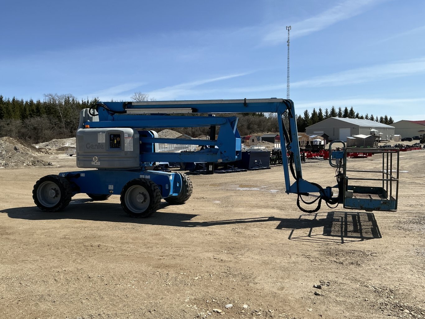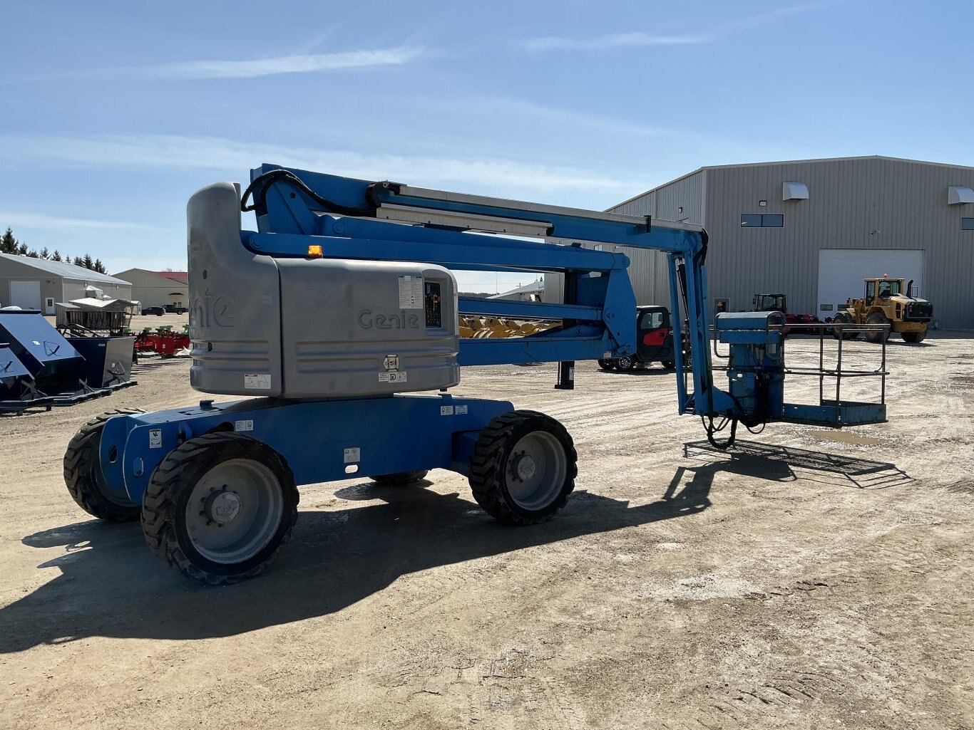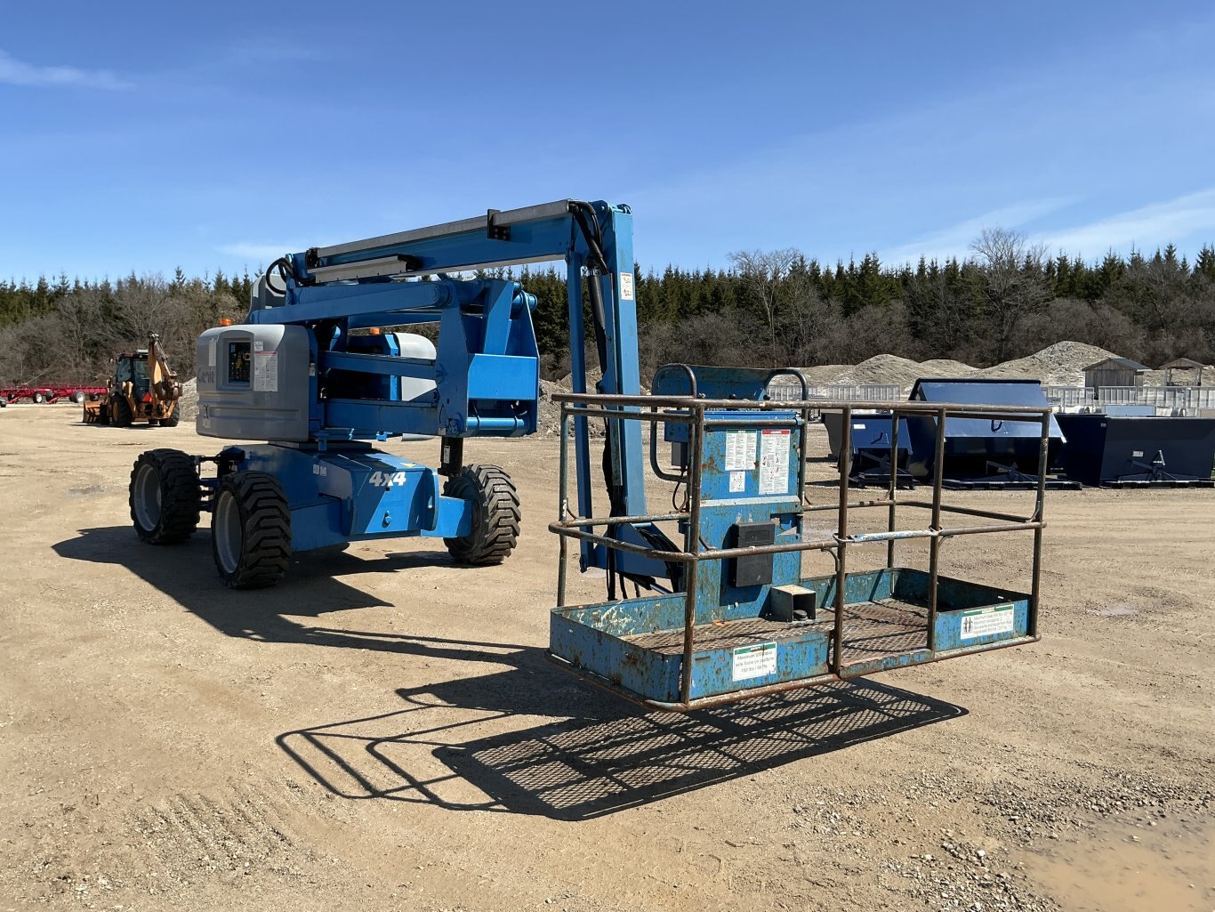 Articulating man lift, 2013 Genie model Z60/34. This boom lift has a platform height of 60 feet giving 66 feet working height and 36 feet outreach. 4WD driveline and powered by a Duetz diesel engine. Machine weighs around 24,000 lbs. Hour meter shows 4186.