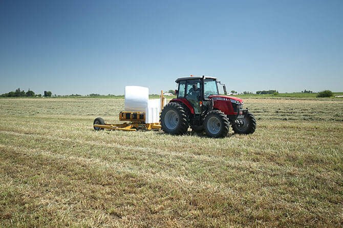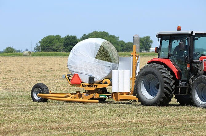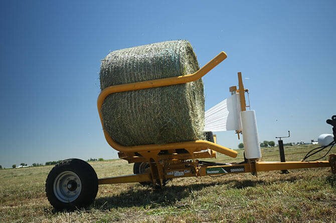 | The new Vermeer SBW-series single bale wrappers allow producers to wrap high- moisture bales in individually wrapped, high-nutrition packages. Ideal for small- to mid-size operations, the SBW8000 is designed to boost production output and enhance operator convenience. The SBW8000 can handle 5-ft x 4-ft (1.5-m x 1.2-m) bales up to 2200 lb (997.9 kg). |
