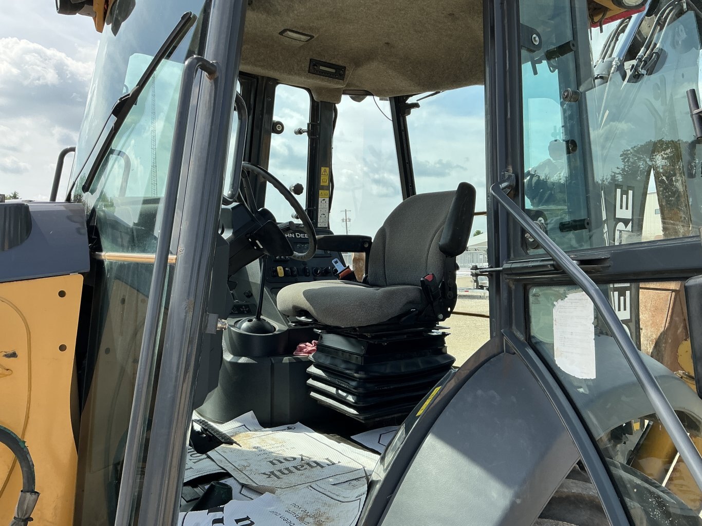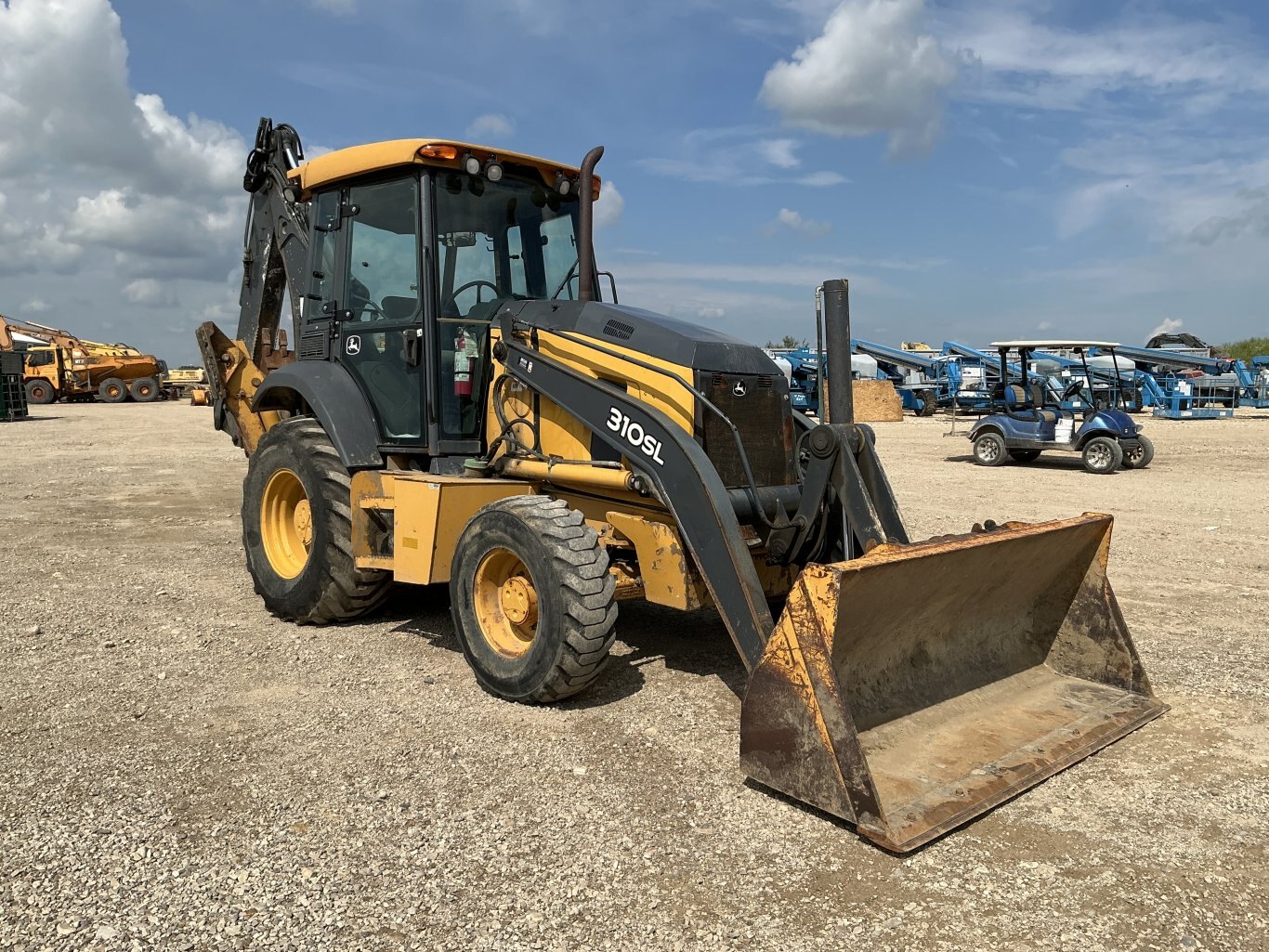 2016 John Deere 310SL Backhoe powered by 101 hp turbo diesel. 4X4 powershift transmission. Front hydraulic quick connect. Rear manual quick connect and auxiliary hydraulics. Weight around 16,356 lbs. Enclosed heated cab. Pilot controls. Extendahoe. Hour meter reads 5973.